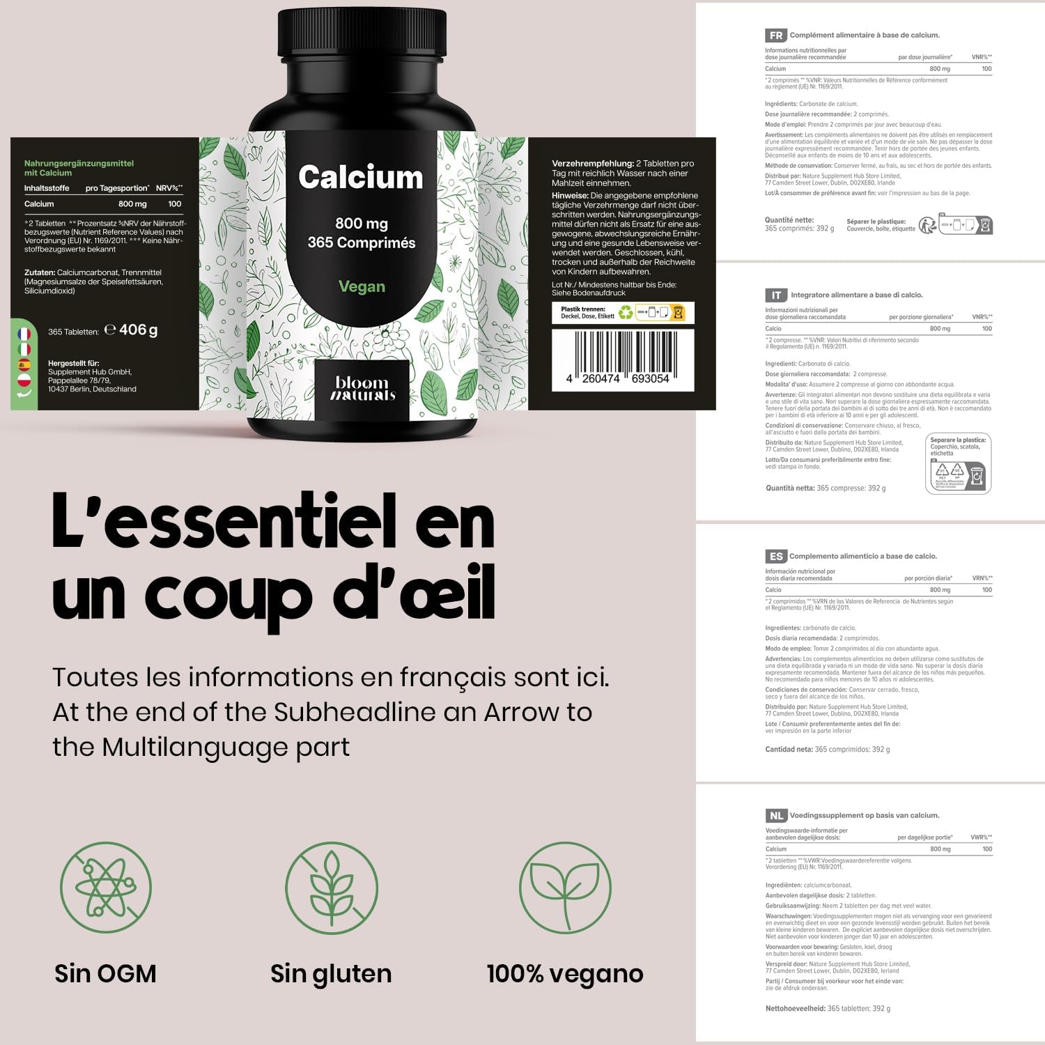 Highly Dosed Calcium Tablets – 365 Tablets – 800 mg Calcium Daily – High Dosed Calcium Tablets – 180 Days Supply – Vegan and Made in Germany