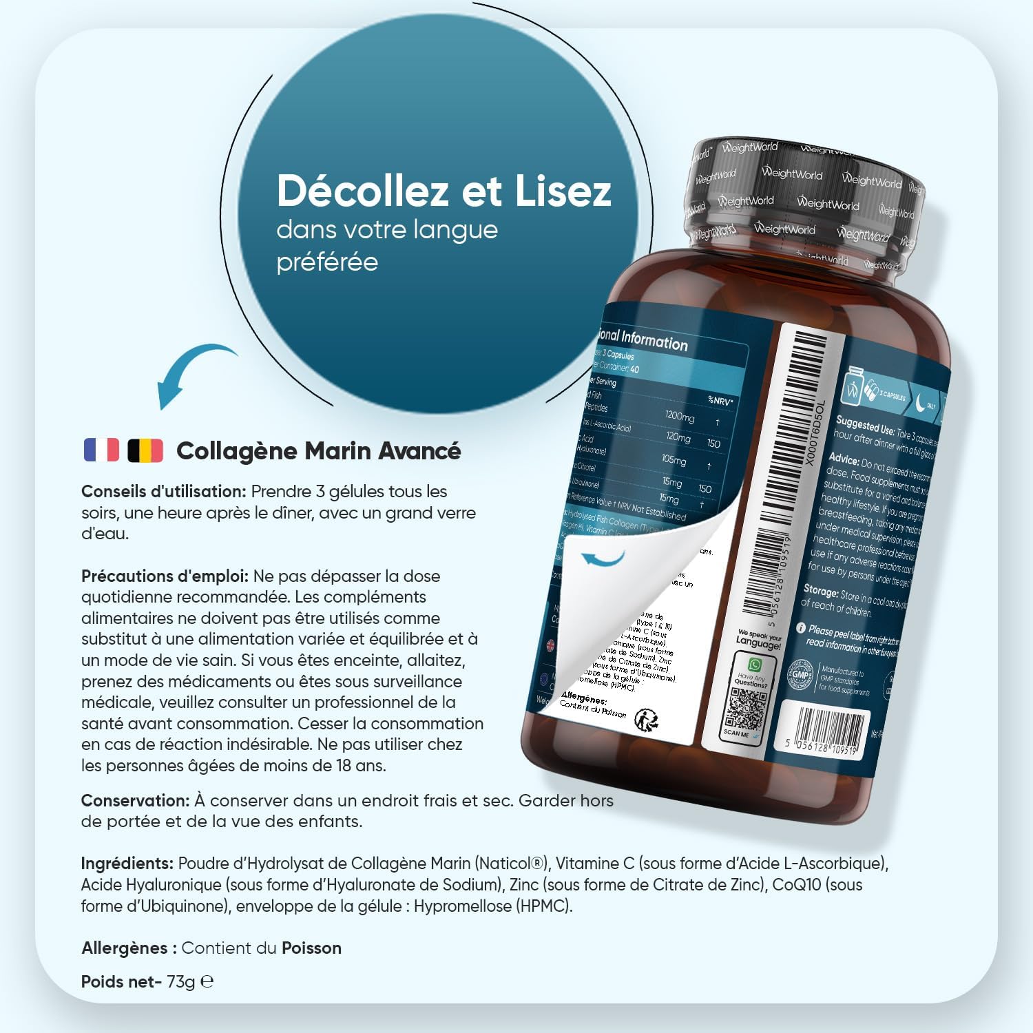Collagen Marine Gluten Free Capsules – Marine Collagen Hyaluronic Acid Capsules are gluten, lactose free and GMO free. Plus, these Vitamin C collagen capsules, enriched with hyaluronic acid and zinc, are made from naturally derived ingredients, and they are magnesium stearate free.