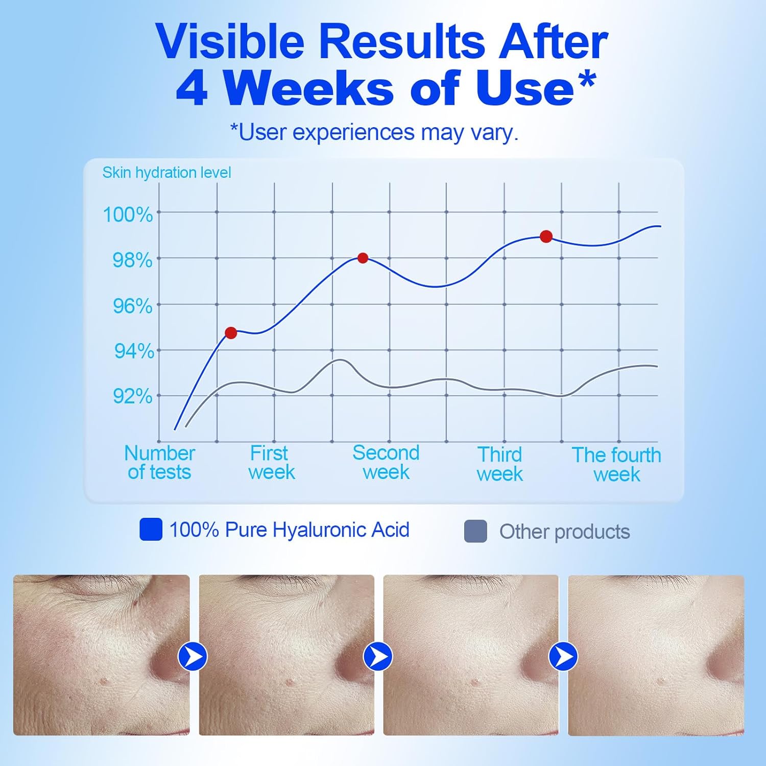 【100% Pure Hyaluronic Acid】Contains only hyaluronic acid, no preservatives, no fragrances, no dyes, no unnecessary additives. The extremely pure formula is also suitable for sensitive skin, it is safe and effective for all skin types.