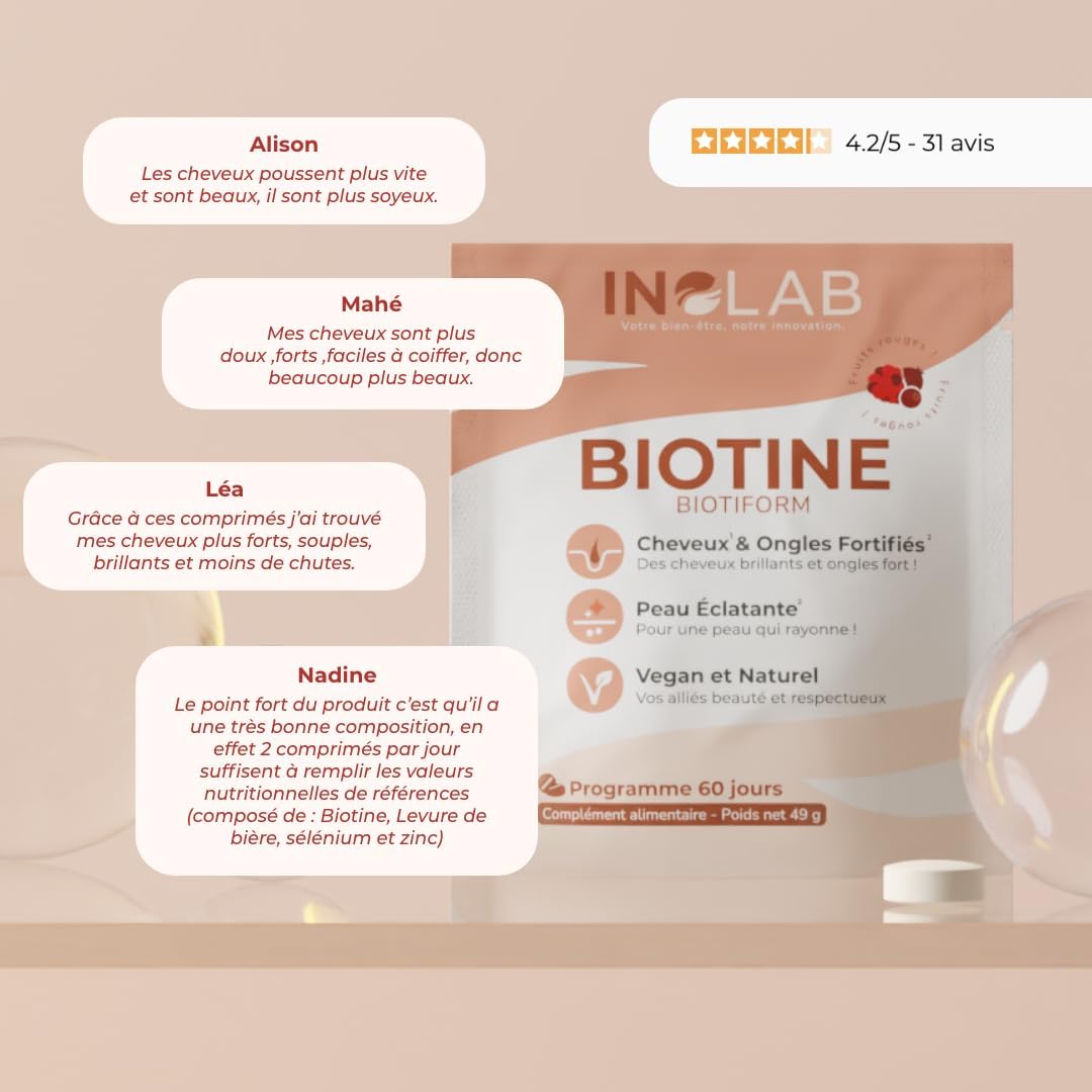 Inolab Biotin + Brewer’s Yeast + Zinc + Selenium I Complete Formula Hair Skin Nails I Natural Red Fruit Flavour No Sweetener.
