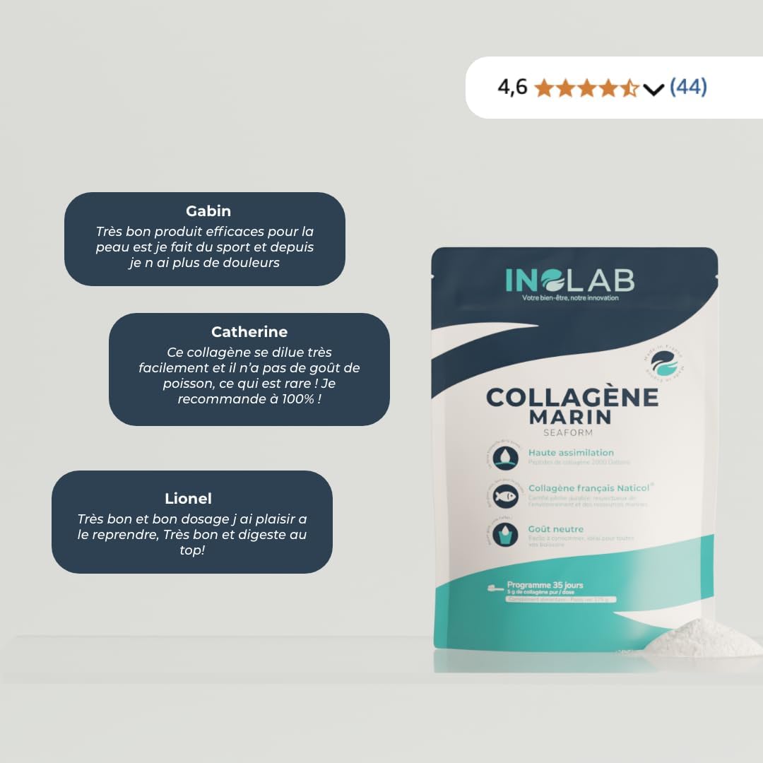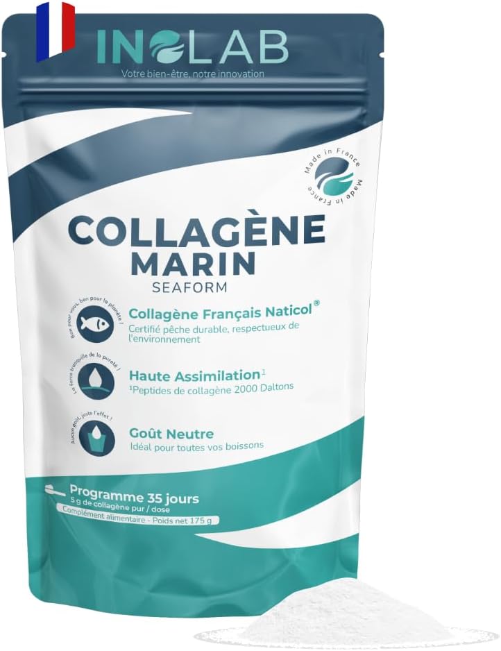 INOLAB French Marine Collagen 2000 Da Quality Naticol I Sachet 175g 5g/day 35 days I Hydrolyzed Peptides I Neutral Taste for All Your Daily Drinks