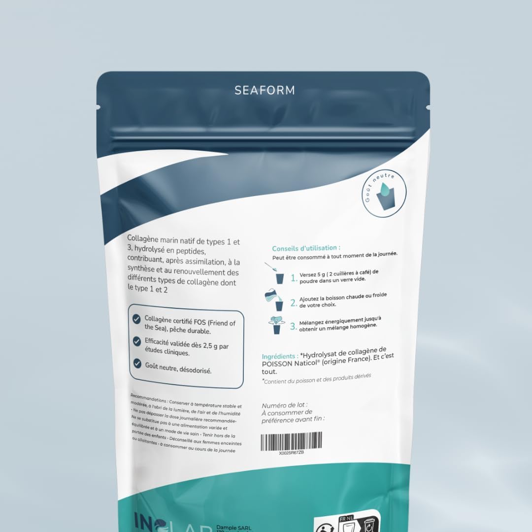 Seaform is the purity of hydrolyzed marine collagen, and nothing else! Zero additives. We have chosen for you the patented French collagen Naticol, the collagen whose effectiveness is best proven by numerous clinical studies.