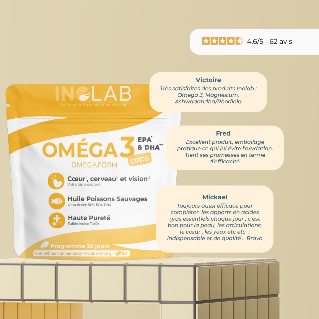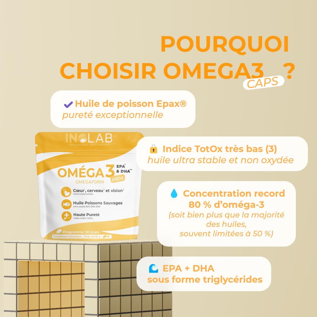 INOLAB Omega 3 DHA EPA EPAX I Ultra Concentrated Wild Fish Oil = 80% EPA/DHA I Omega 3 Low Totox Index.