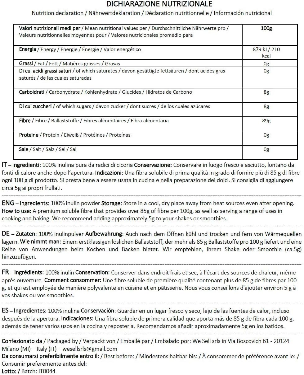 NATURAL VEGETABLE FIBER: Our organic inulin powder contains a high percentage of beneficial plant fiber, exceeding 90%. This product is suitable for vegans and vegetarians as it is produced and processed in a totally organic and natural way.