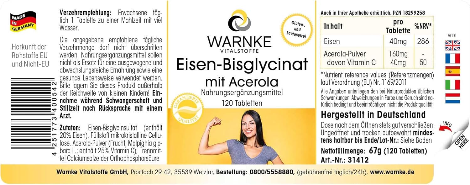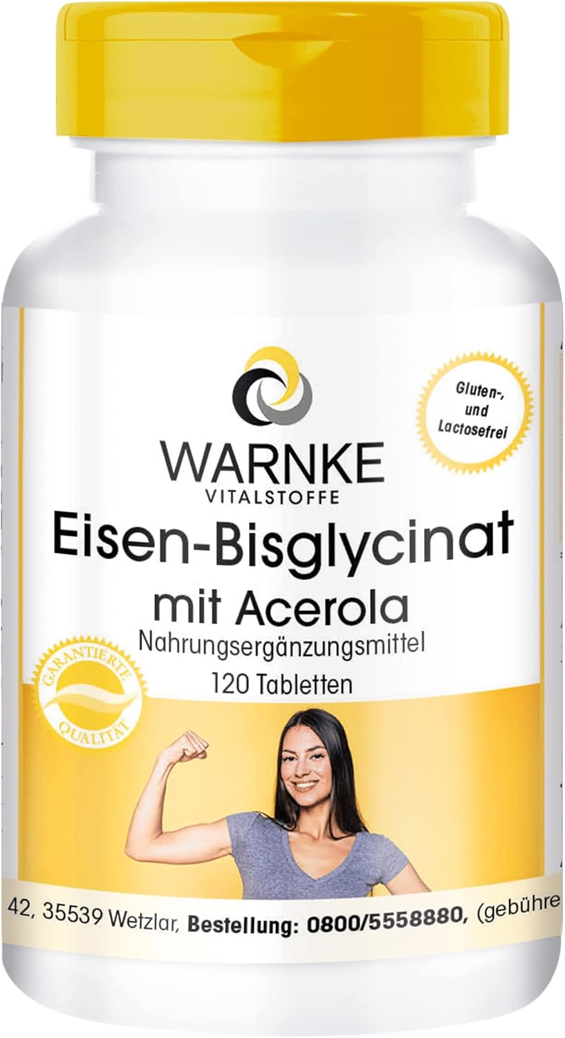 Iron bisglycinate plus acerola – 120 tablets 40 mg elemental iron from our own manufacture – highly dosed – vegan | Warnke Vitalstoffe – Quality from German pharmacies
