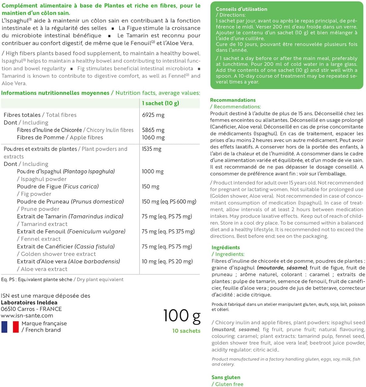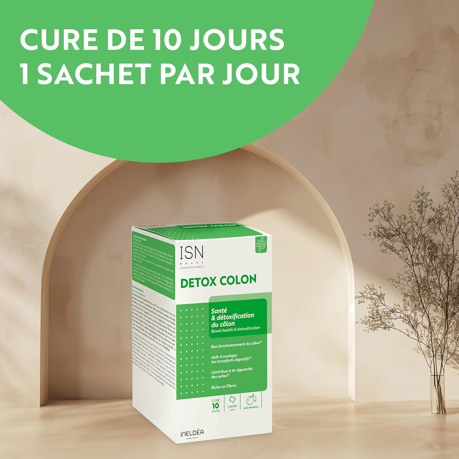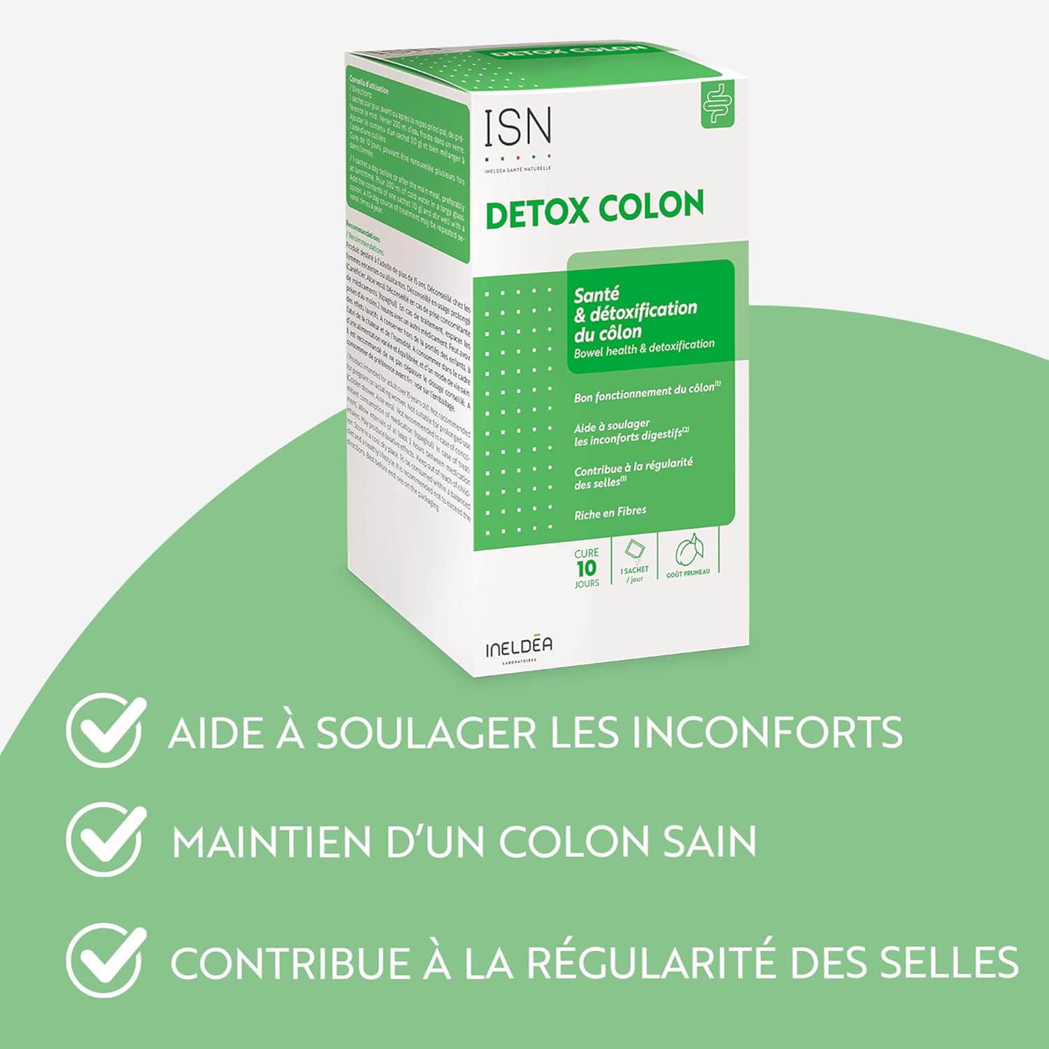 ISN – Detox Colon – Naturally detoxifies & purifies the colon – Relieves bowel discomfort – Rich in fiber and flat – Gluten free – 10 sachets