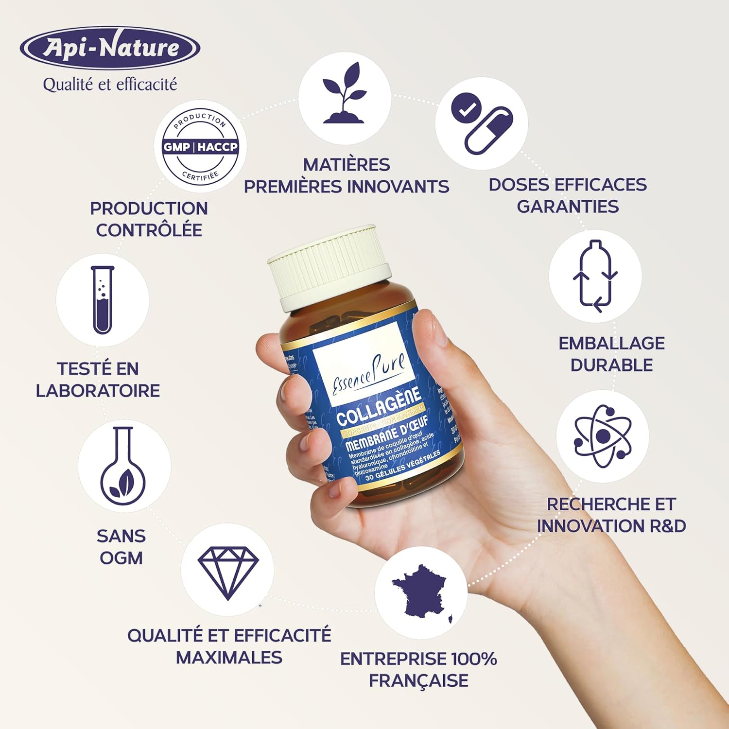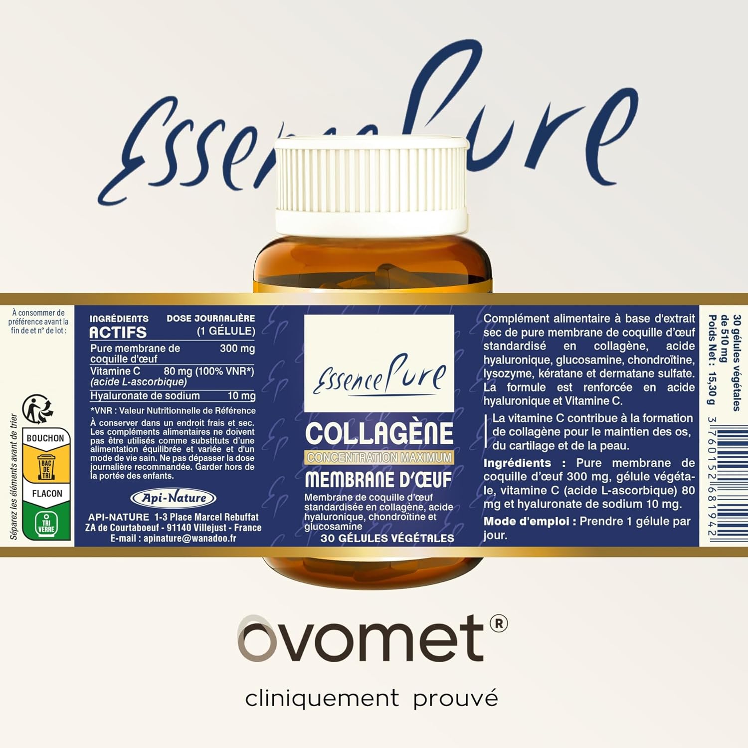 Joint Collagen & Pain | Ovomet & Hyaluronic Acid | Protocol for Skin, Bone and Joint Pain | 30 Vegetarian Capsules | Pure Essence Api-Nature