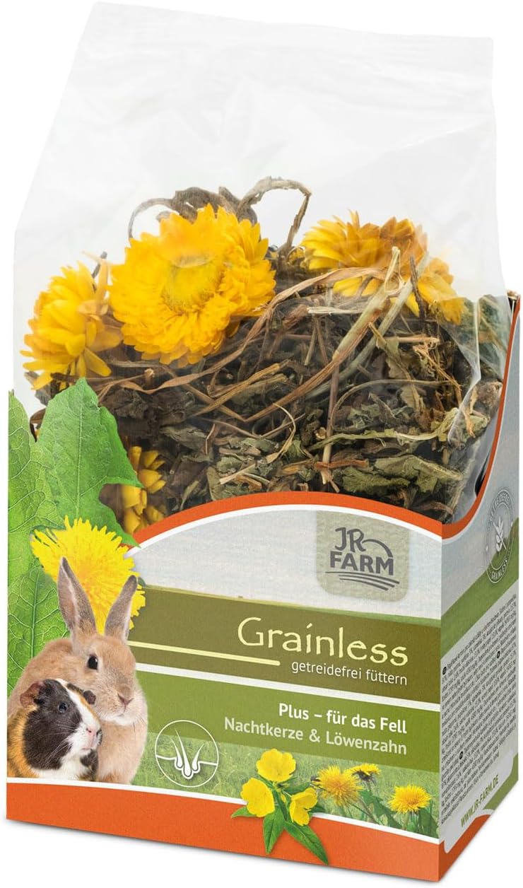 Pissenlit délicatement séché et savoureux en combinaison avec une onagre apaisante, c’est une pure détente pour tous les rongeurs. Les ingrédients spéciaux de l’onagre peuvent avoir un effet positif sur la peau et le pelage de votre animal et les fleurs de paille aromatiques sont un régal très spécial. Le complément parfait pour une alimentation sans céréales. La menthe poivrée et le pissenlit stimulent également le métabolisme et soutiennent les organes digestifs.