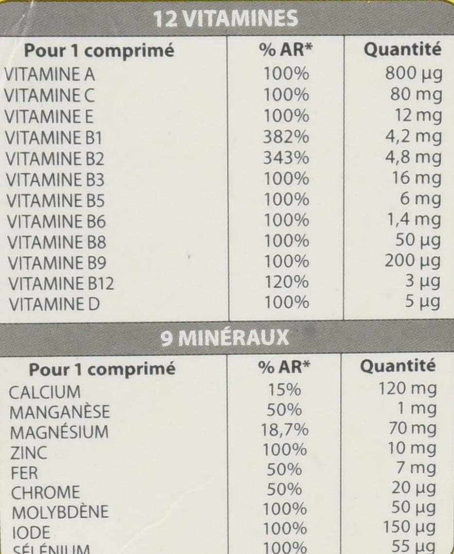 The formula 12 Vitamins and 9 Minerals guarantees each day a specific intake of 9 minerals and at least 100% of the Reference Intake of 12 vitamins. Juvamine Laboratories is more than 30 years of expertise and joint research between food specialists, pharmacists and quality engineers. In order to offer formulas adapted to each of the needs, they select and combine essential micronutrients on a daily basis. Every day the body needs vitamins and in order to function well and be in full mineral form. In particular, vitamins C, B2, B3, B6, B9, iron and magnesium contribute to reducing transient fatigue. A varied diet is the source of a good diet balance. Current lifestyles (working rhythm, stress, diet, etc.) do not always allow to respect this essential rule.