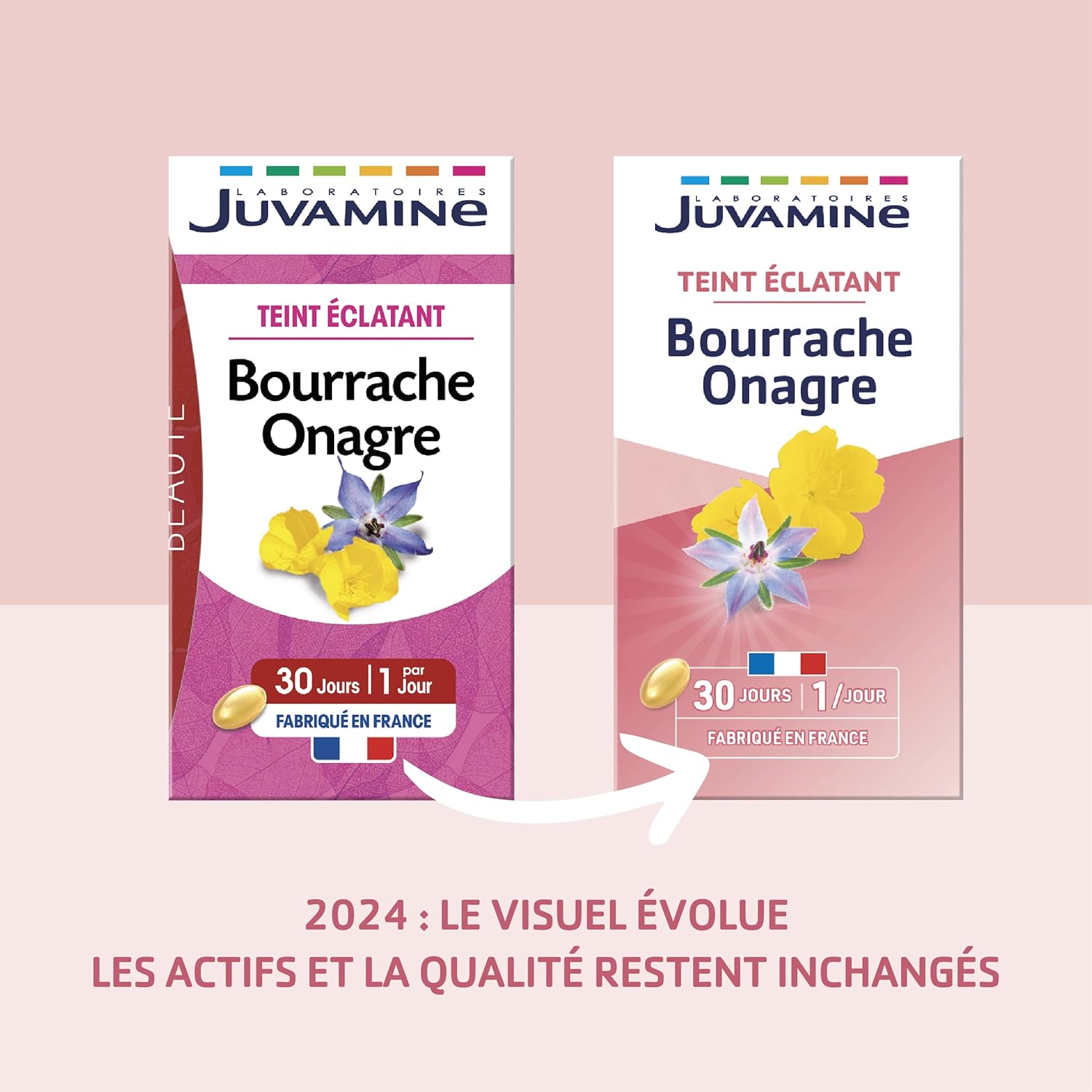 JUVAMINE – Evening Primrose Borage – Brightening Complexion – Helps to keep skin healthy – 30 Capsules – 30 Day Programme – Made in France
