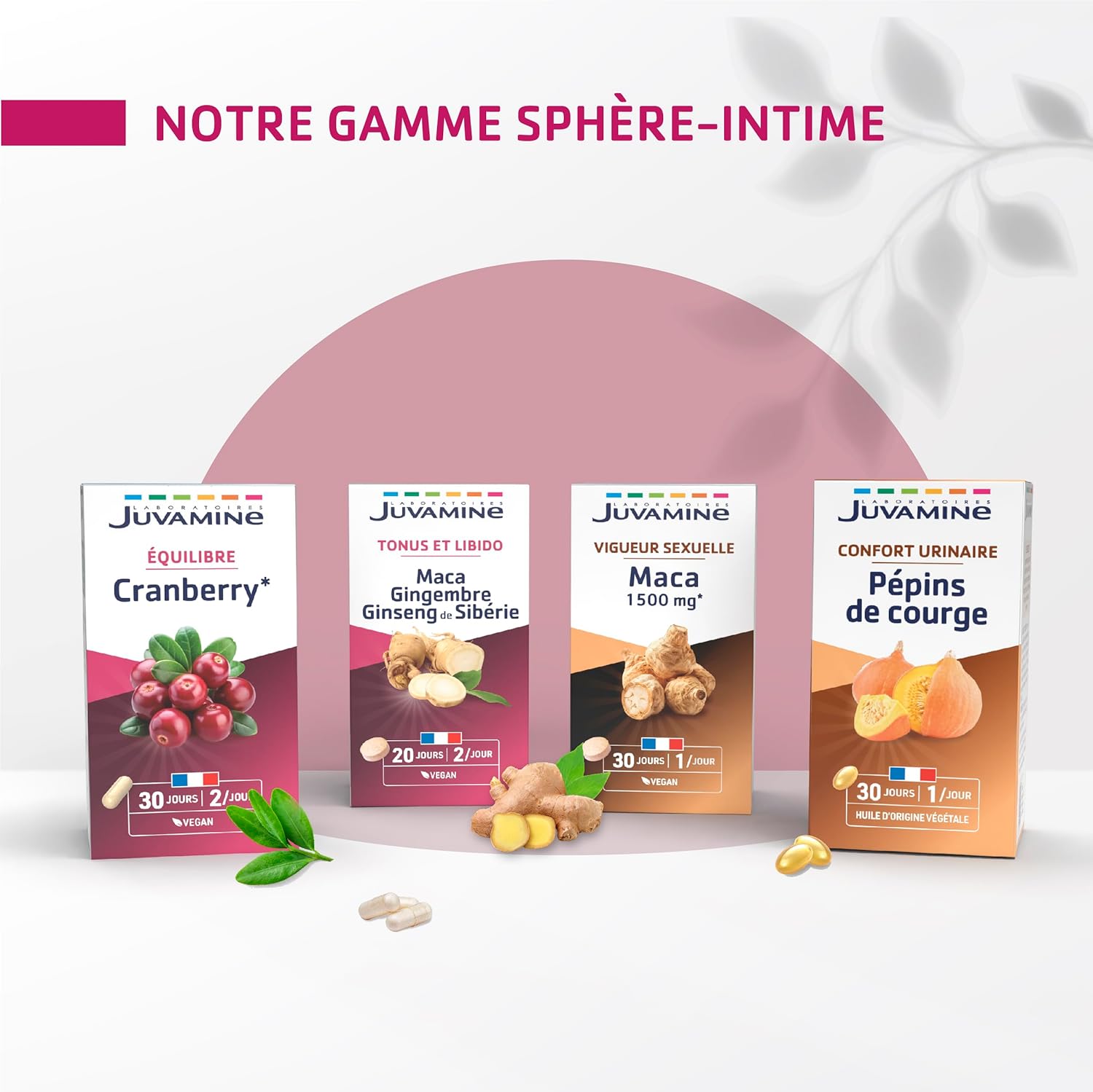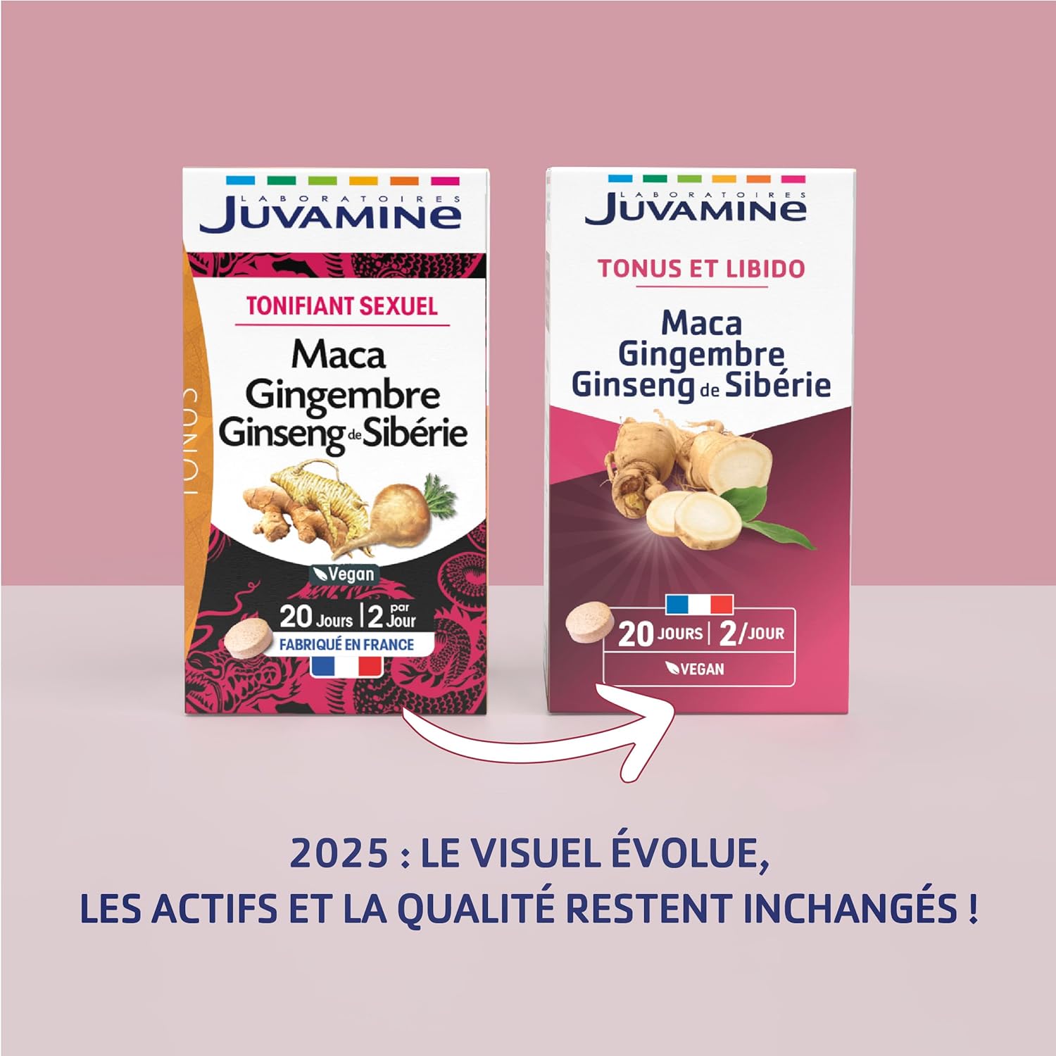 JUVAMINE Maca Ginger and Siberian Ginseng, Sexual Toner, Tonus and Vigor, Toning, Stimulating, 20 Day Program, 40 Tablets, Made in France