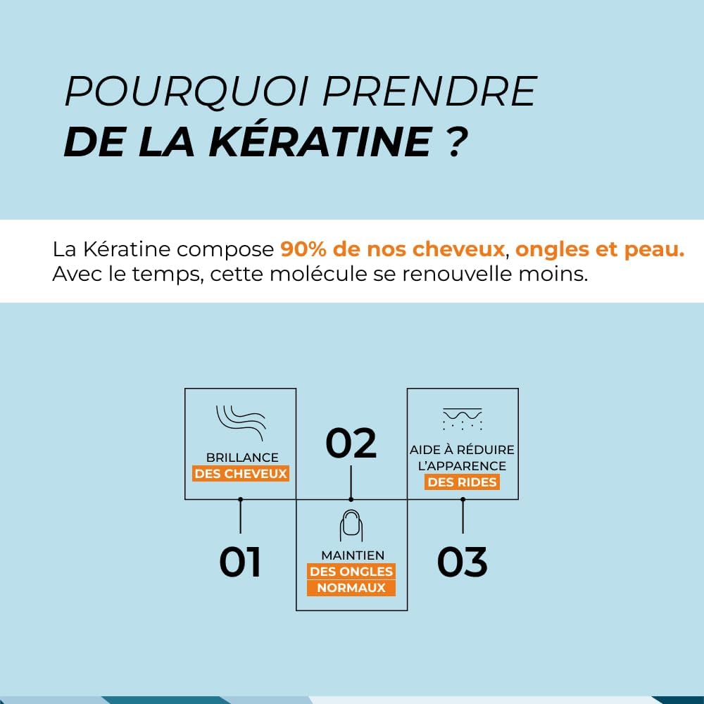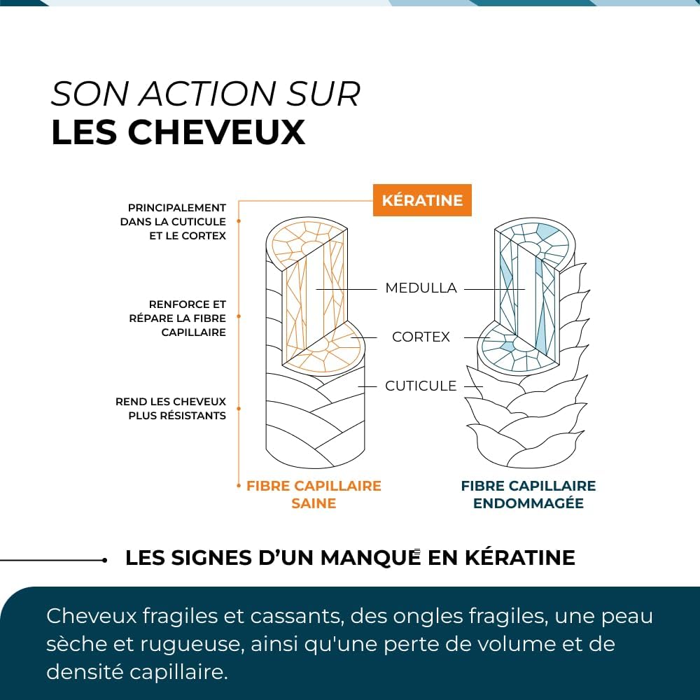 HAIR GROWTH AND SHINEWEEN Keratin makes up 90% of our hair, nails and epidermis. A lack of Keratin can manifest itself in signs such as brittle and brittle hair, fragile nails, dry and rough skin, as well as loss of hair volume and density.
