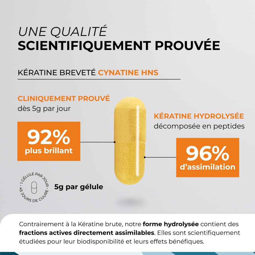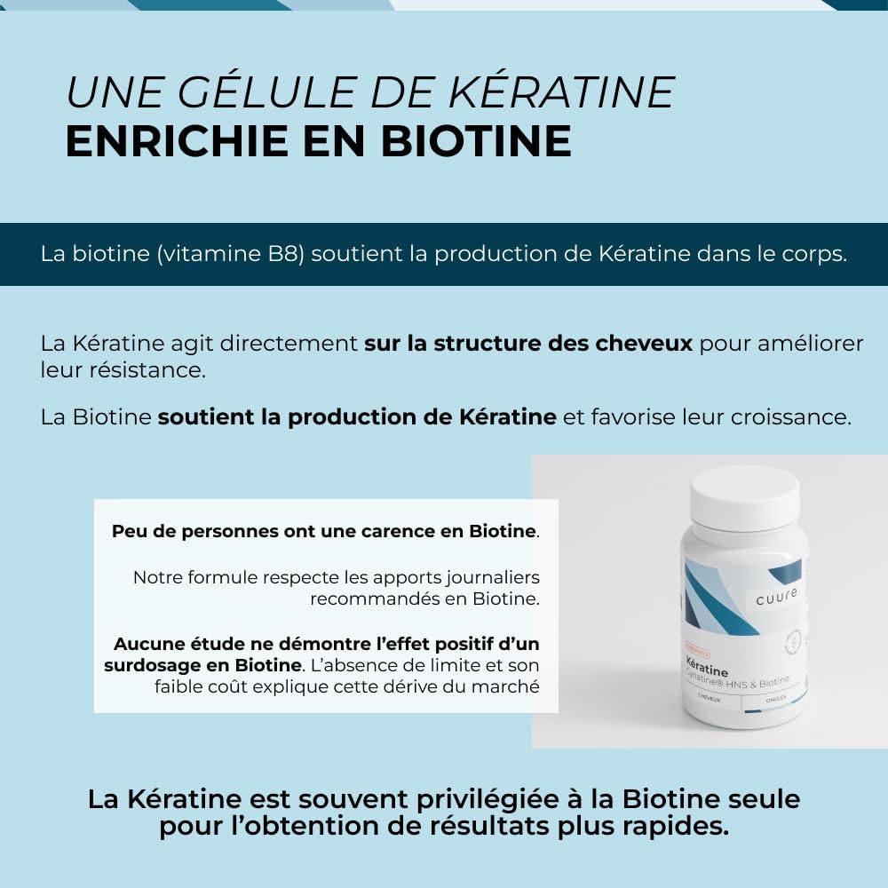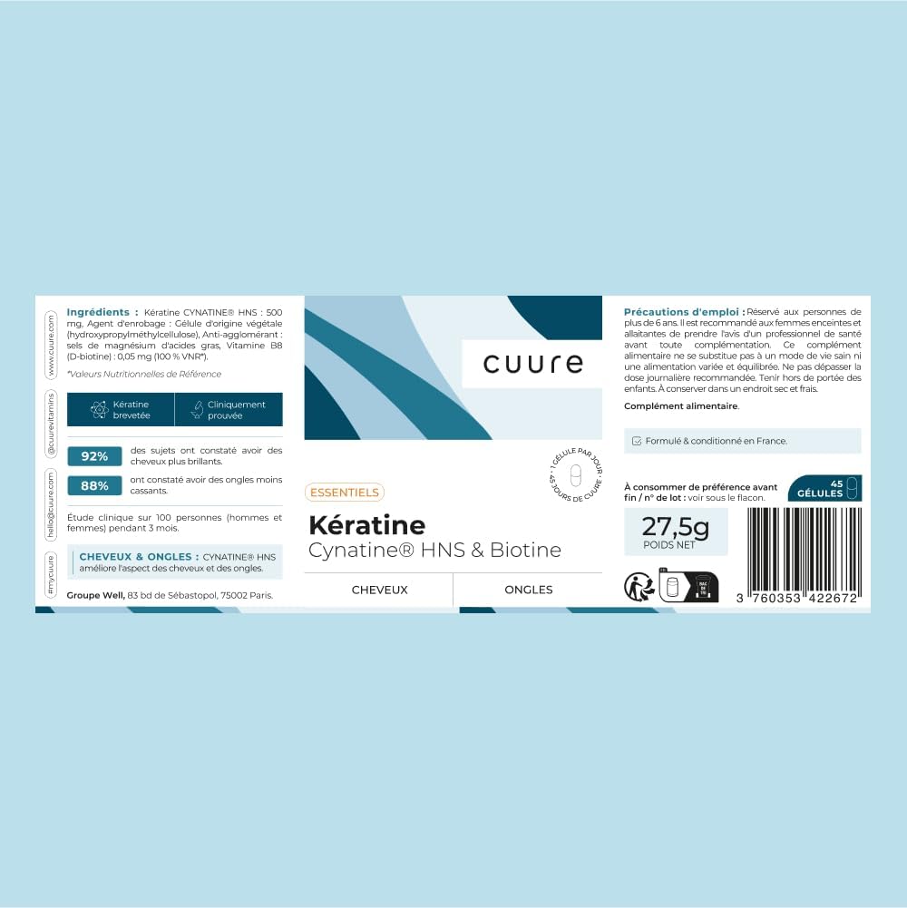 Keratin and Biotin – Cuure – Patented Ingredient Cynatine – 45 Days – Hair Growth & Shine – Vitamin B8 – Hair Supplement for Hair, Nails & Skin – Made in France