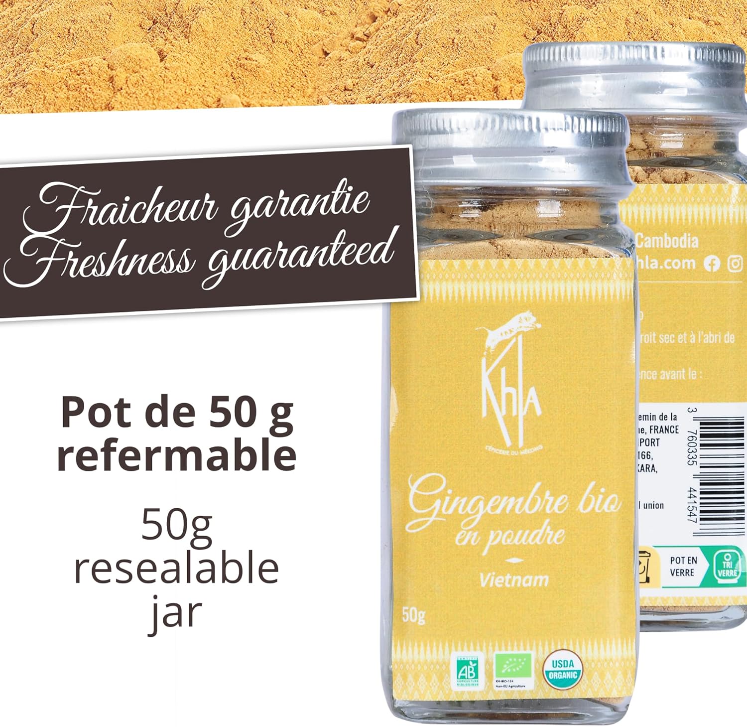 ✅ FRESHNESS GUARANTEED – Our ground ginger is packaged in a 50g resealable jar that guarantees its freshness. Practical packaging for everyday use while ensuring excellent product storage. Recyclable bag made from recycled materials.