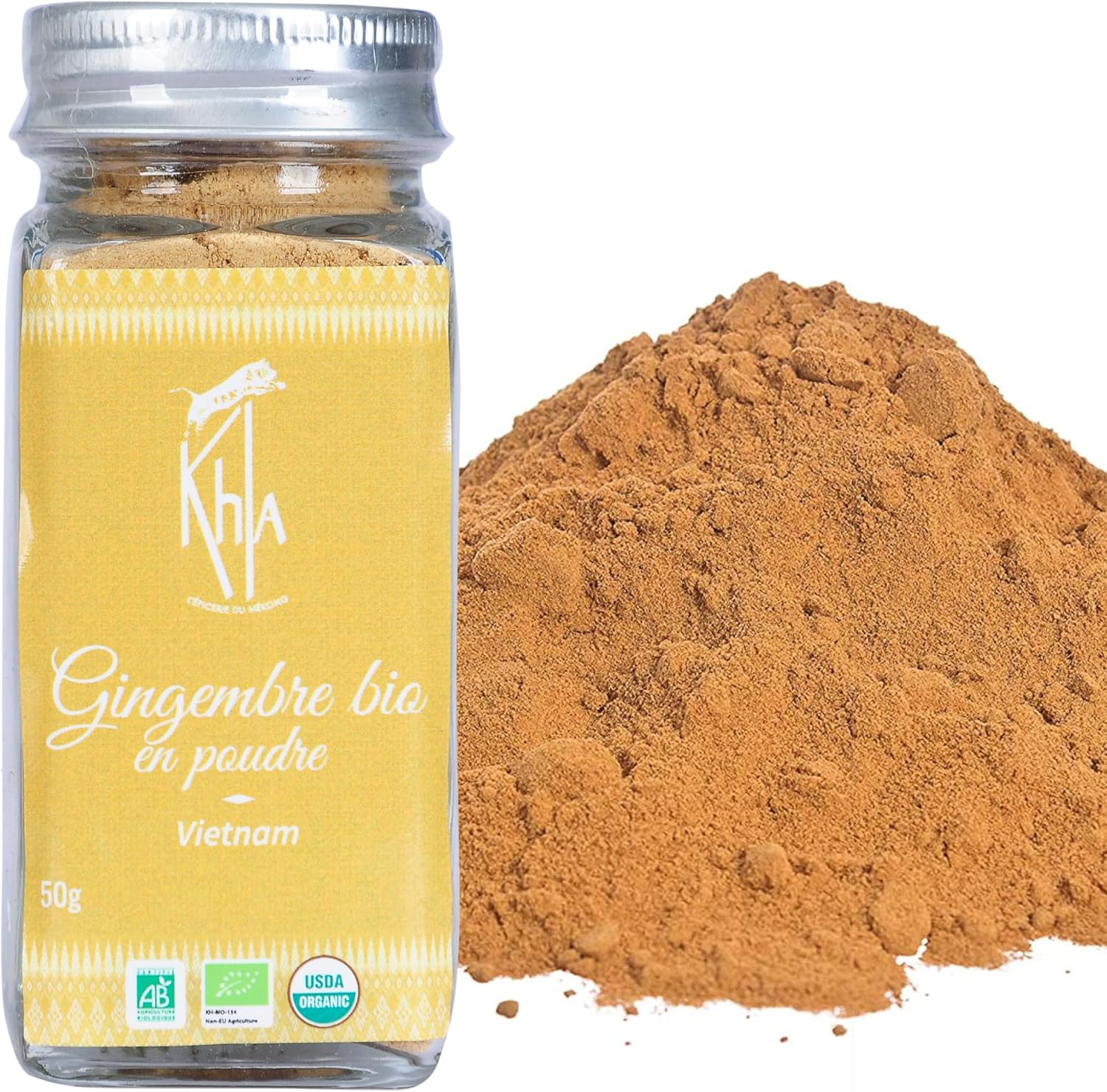 Khla – Organic Ginger Powder 50g – Pot of Vietnam Ground Ginger – Cooking & Baking Ingredient – Meat, Fish, Desserts, Woks, Asian Dishes – Asian Spice