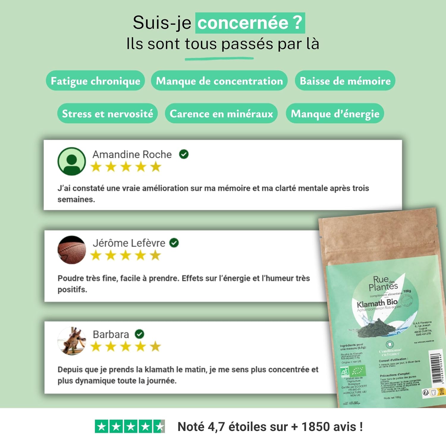 Be the first to review “Klamath Bio Powder 500g – Natural Superfood Rich in Proteins, Vitamins and Antioxidants, Supports Energy, Concentration and Global Well-Being | Packaged in France, RUE DES PLANTES” Cancel reply