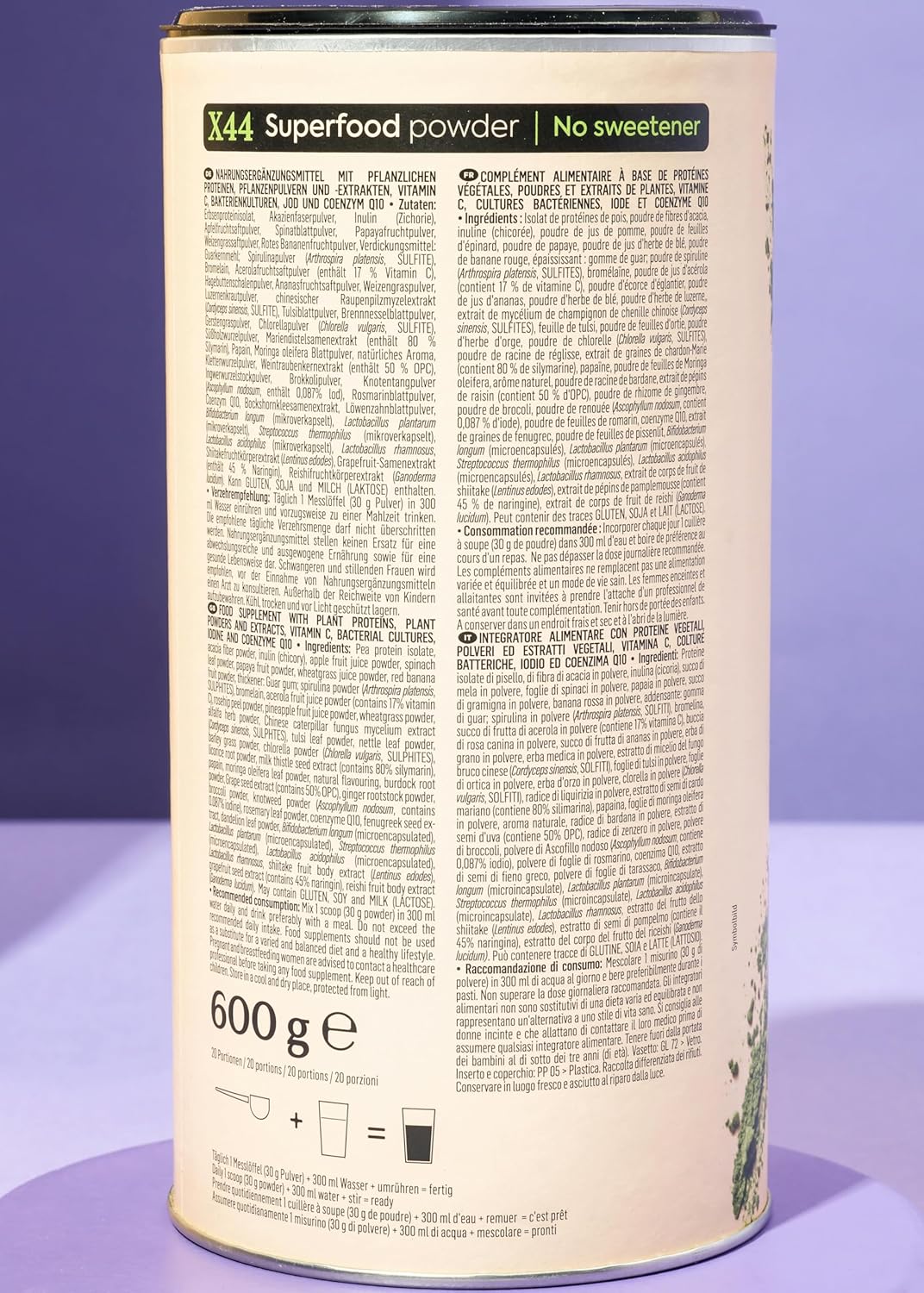 PRECIOUS: Our sweetener-free powder consists of 43 ingredients with different nutrients and active ingredients.