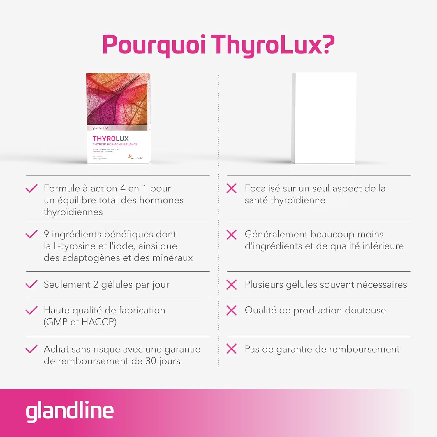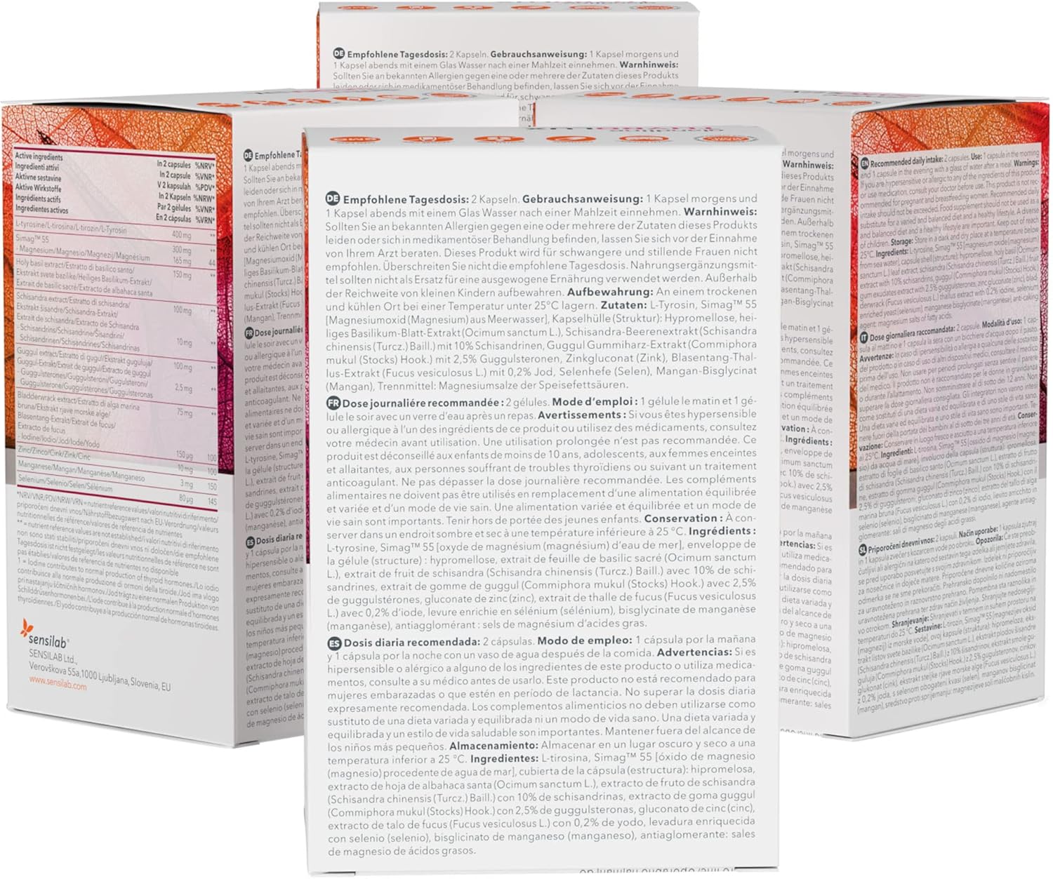Manufactured to GMP and HACCP standards – Thyrolux is manufactured to the highest pharmaceutical standards, in accordance with GMP and HACCP food safety management systems. All raw materials and finished products are subjected to careful controls and have undergone microbiological and heavy metal analyses. Developed and manufactured by Sensilab – with over 15 years of experience in the development and production of dietary supplements.