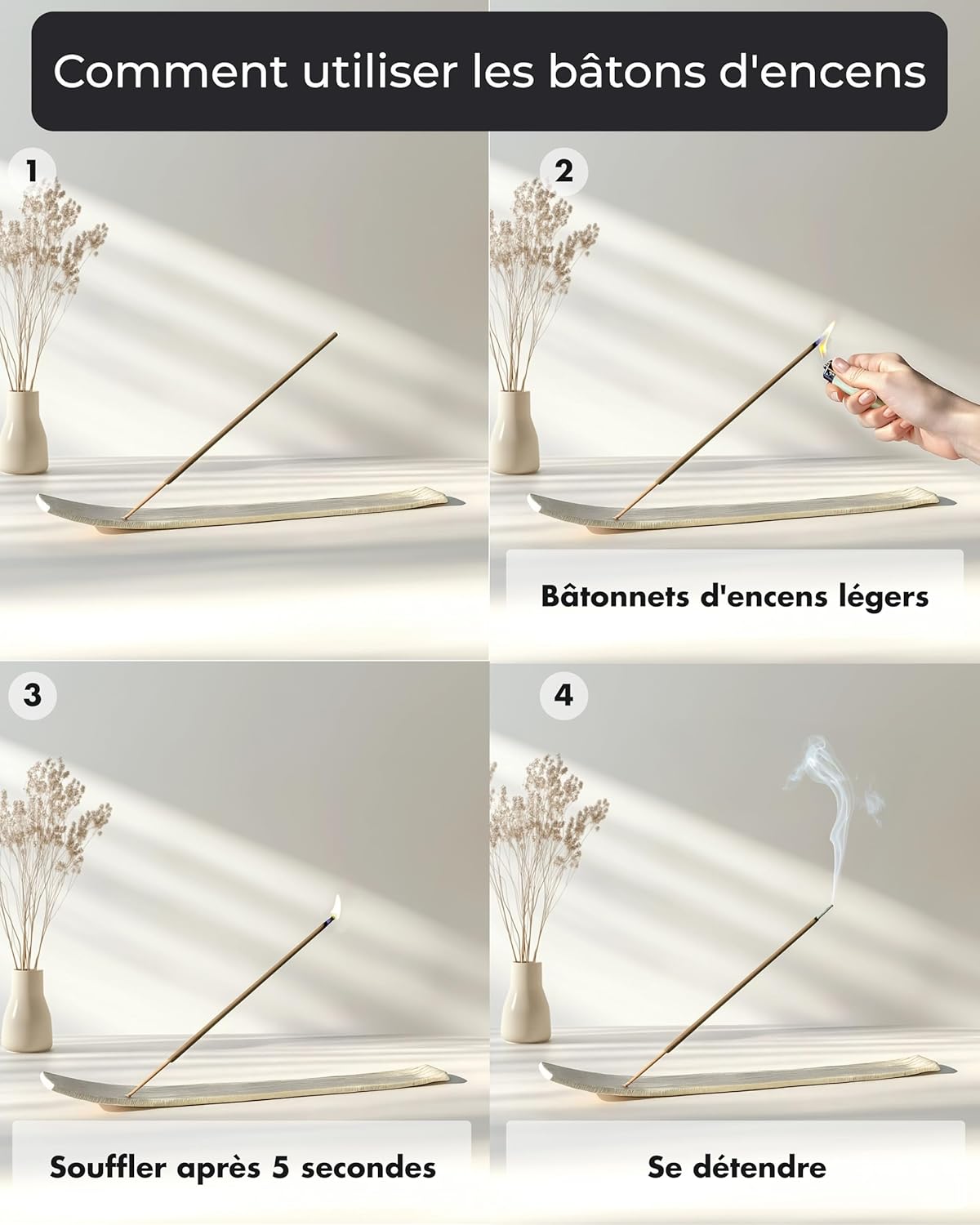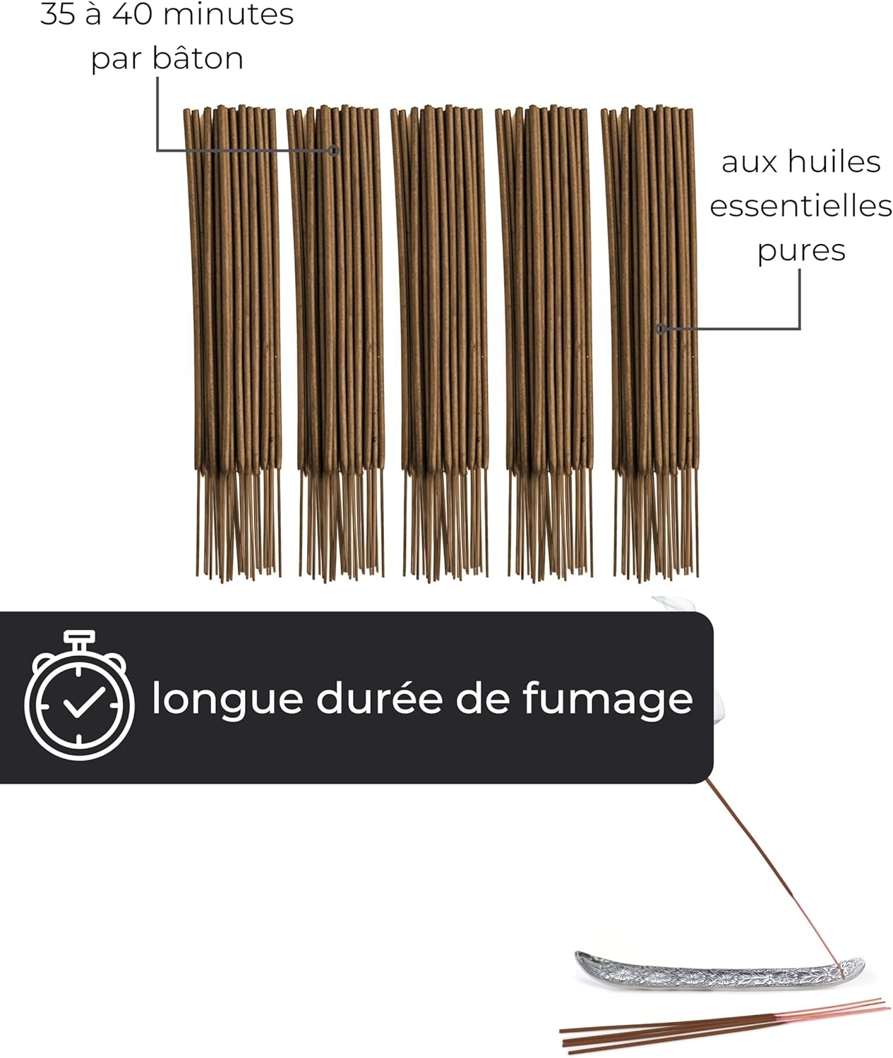 Chaque bâtonnet brûle pendant environ 30 à 45 minutes, en fonction du parfum et de l’environnement.