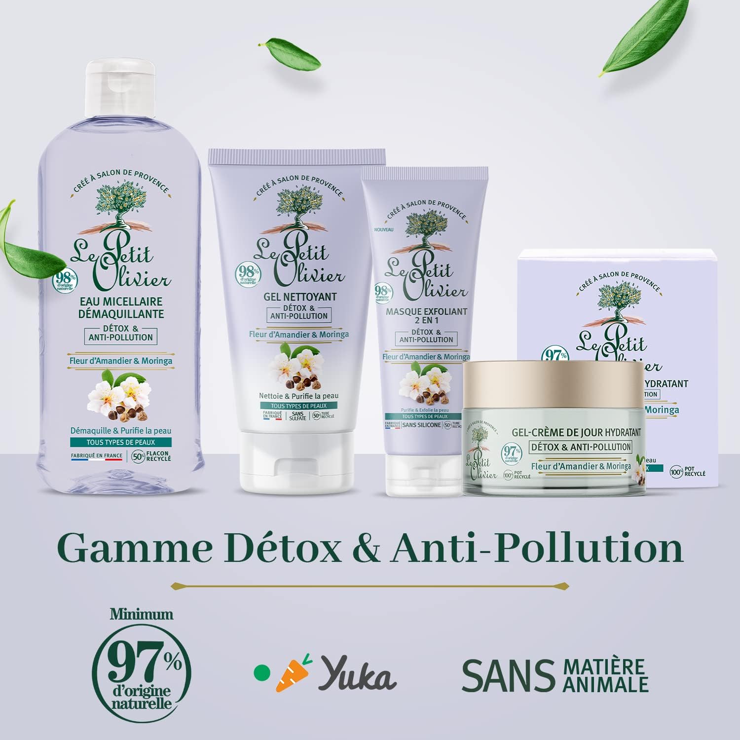 Product description : detox and anti-pollution cleansing gel with almond blossom and moringa seed. All skin types. Directions for use: Apply morning and evening on wet face, massage gently avoiding the eye area. Rinse with clean water. The Little Olivier, simply nature. At Le Petit Olivier, we strive every day to find the perfect balance between well-being, pleasure, sustainability and efficiency. All our products are made in France*. Our fragrances come from the Grasse region. Labeled One Voice since 2001 for animal and planetary ethics, we are also committed to improving the environmental impact of our packaging by favoring eco-responsible alternatives. Our formulas incorporate a high percentage of natural origin meeting a demanding internal formulation charter. *With the exception of Aleppo soap.