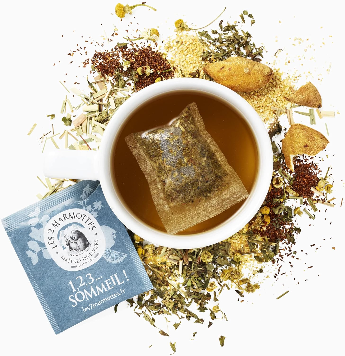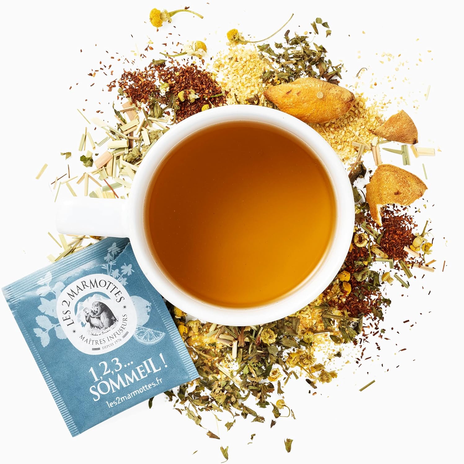 Les 2 Marmottes – Infusion 1,2,3…Sleep! 30 sachets – Lemon balm, lemon and chamomile – Sleep well and Relaxation – Made In France – No added flavors – 36g