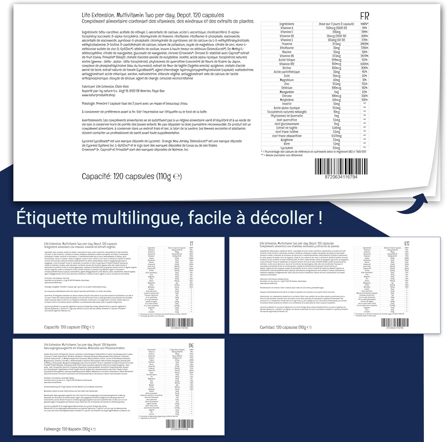 IMPORTANT NUTRIMENTS Life Extension Multivitamin Blend contains a unique combination of vitamins, minerals, trace elements, NAC, fruit extracts, plant extracts and enzymes; essential nutrients that participate in many processes in the human body