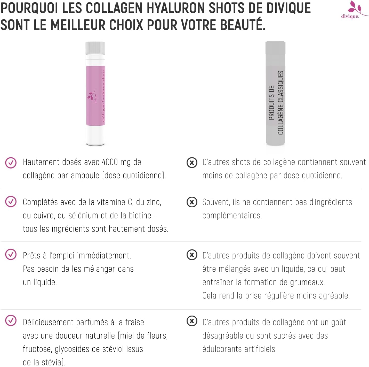 QUALITY YOU CAN RELY ON – At Divique, we set standards. Each of our collagen drinking ampoules undergoes rigorous quality controls to ensure you receive only the best.