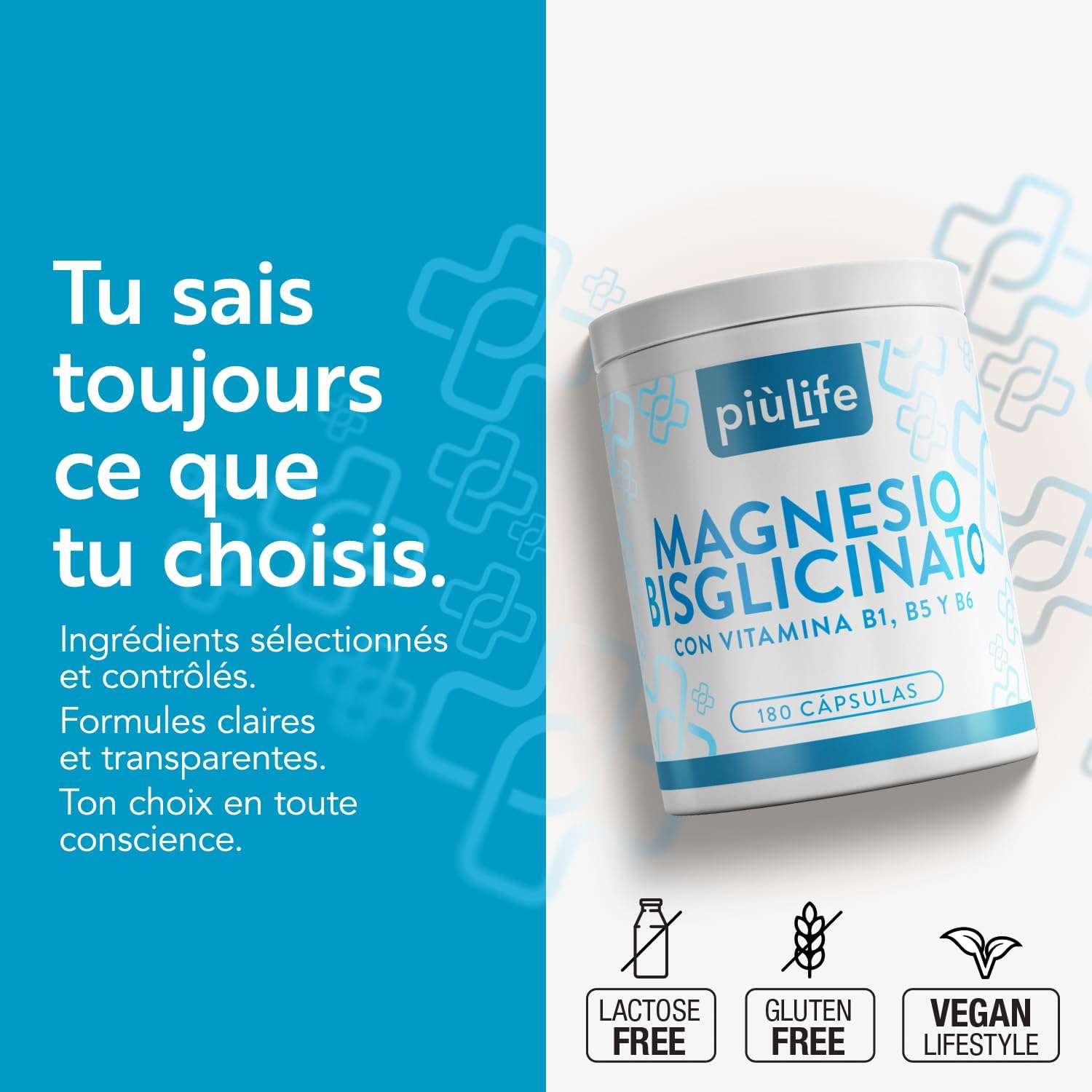 PiùLife Magnesium Bisglycinate is an easily absorbable supplement that supports muscle relaxation, counteracts fatigue, promotes bone well-being and supports intestinal regularity. It is a versatile companion for everyday well-being, offering benefits that extend from within to your mental and physical state