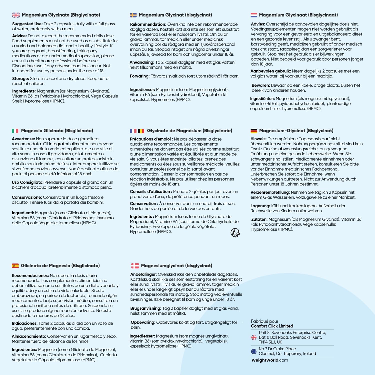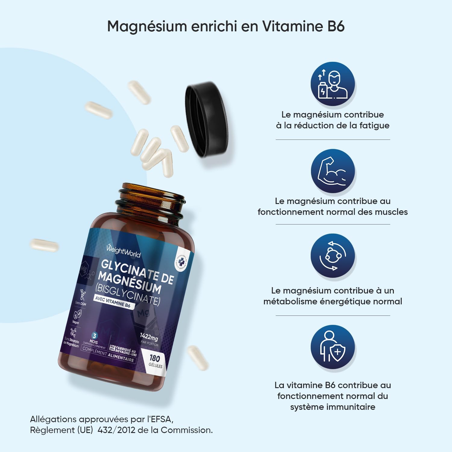 Multiple properties of Magnesium Bisglycinate – According to EFSA, magnesium helps to reduce fatigue and a normal energy metabolism. It contributes to the normal functioning of the muscles and the maintenance of a normal bone. Magnesium maintains normal psychological function and contributes to the normal functioning of the nervous system.