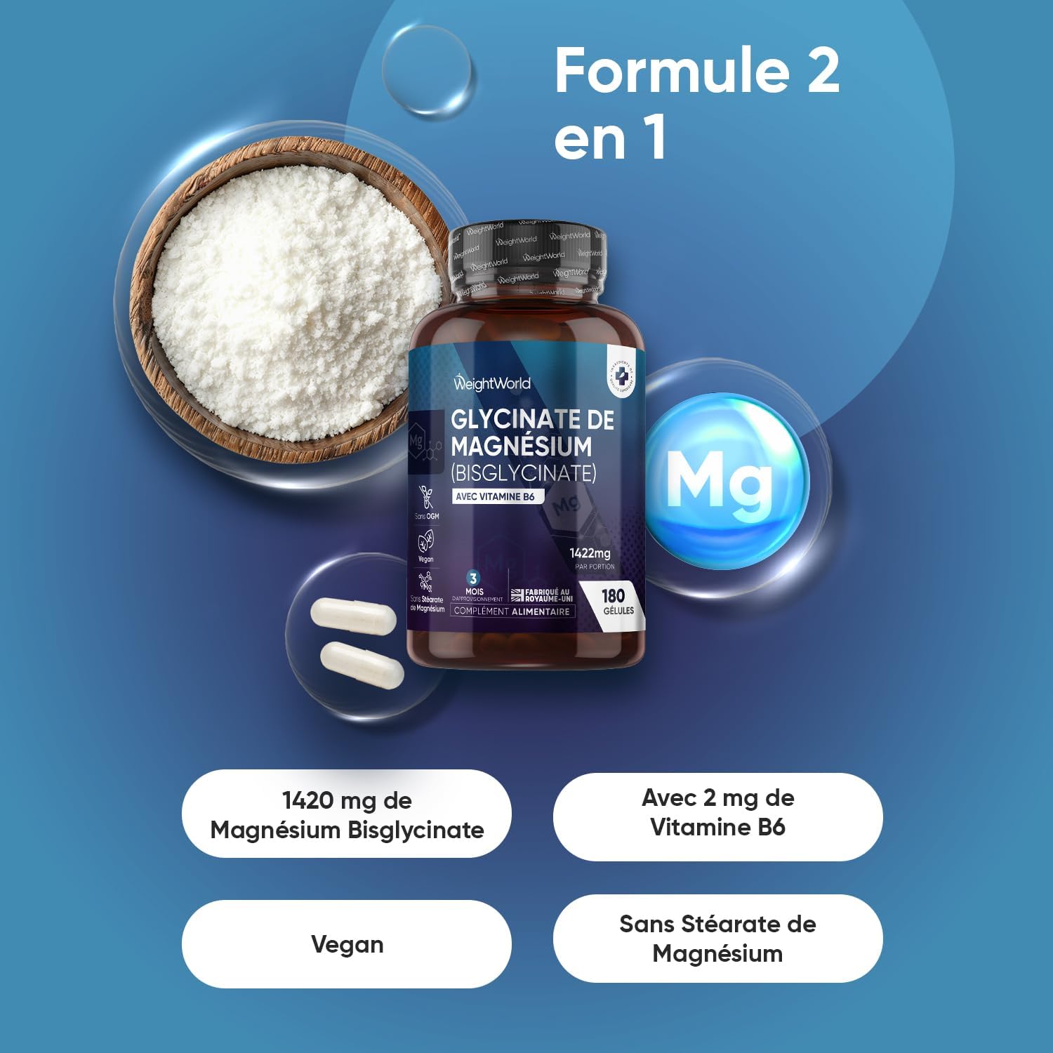 ENRICHED WITH VITAMIN B6 – This formula combines magnesium bisglycinate (magnesium glycinate) with vitamin B6 for an extra intake in your daily routine (magnesium b6). According to EFSA, vitamin B6 contributes to the normal metabolism of homocysteine and contributes to normal protein and glycogen metabolism.