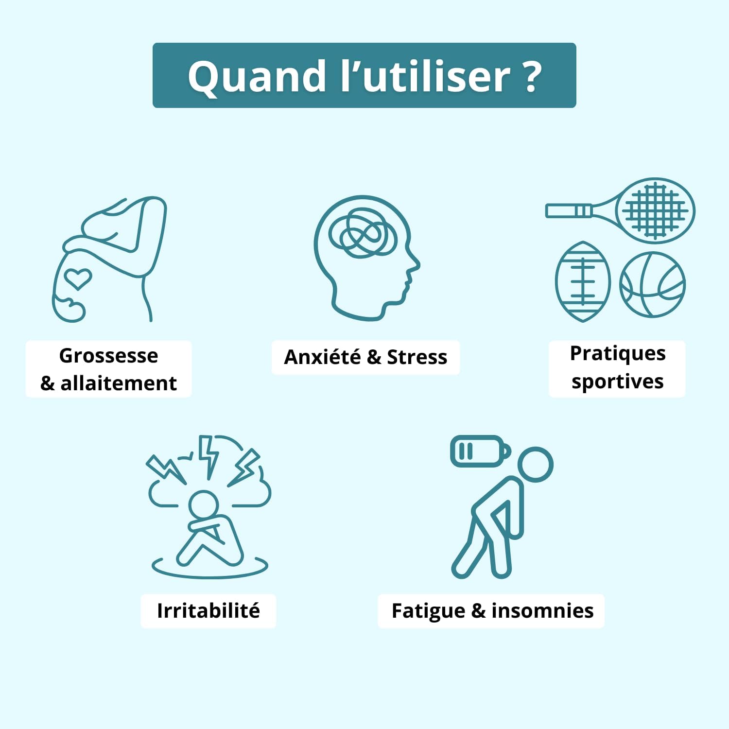 Made in France – Quality and traceability ●● Designed and manufactured in France, our Magnesium Bisglycinate + Zinc and B6 benefits from strict control and know-how of more than 20 years to guarantee purity, safety and optimum efficiency.
