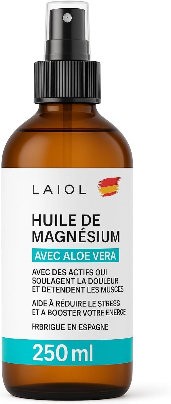 Discover the power of magnesium oil spray from LAIOL, your new ally to relieve tension, better rest and take care of your skin. Our magnesium oil spray is ideal for feet, legs, back or any area with muscle pain. Formulated from pure magnesium chloride, this magnesium oil is perfect after exercise, during relaxing massages or before bedtime. Its light texture and fast absorption make it a practical and effective choice for daily use. It relieves tired feet, naturally fights insomnia and improves skin hydration in one product. Ideal for those looking for a natural alternative for muscle wellness, nighttime rest and topical treatments. This magnesium foot spray is also recommended as a body mist, for children, adults, athletes or people with daily stress. Its 250ml size makes it convenient and portable.