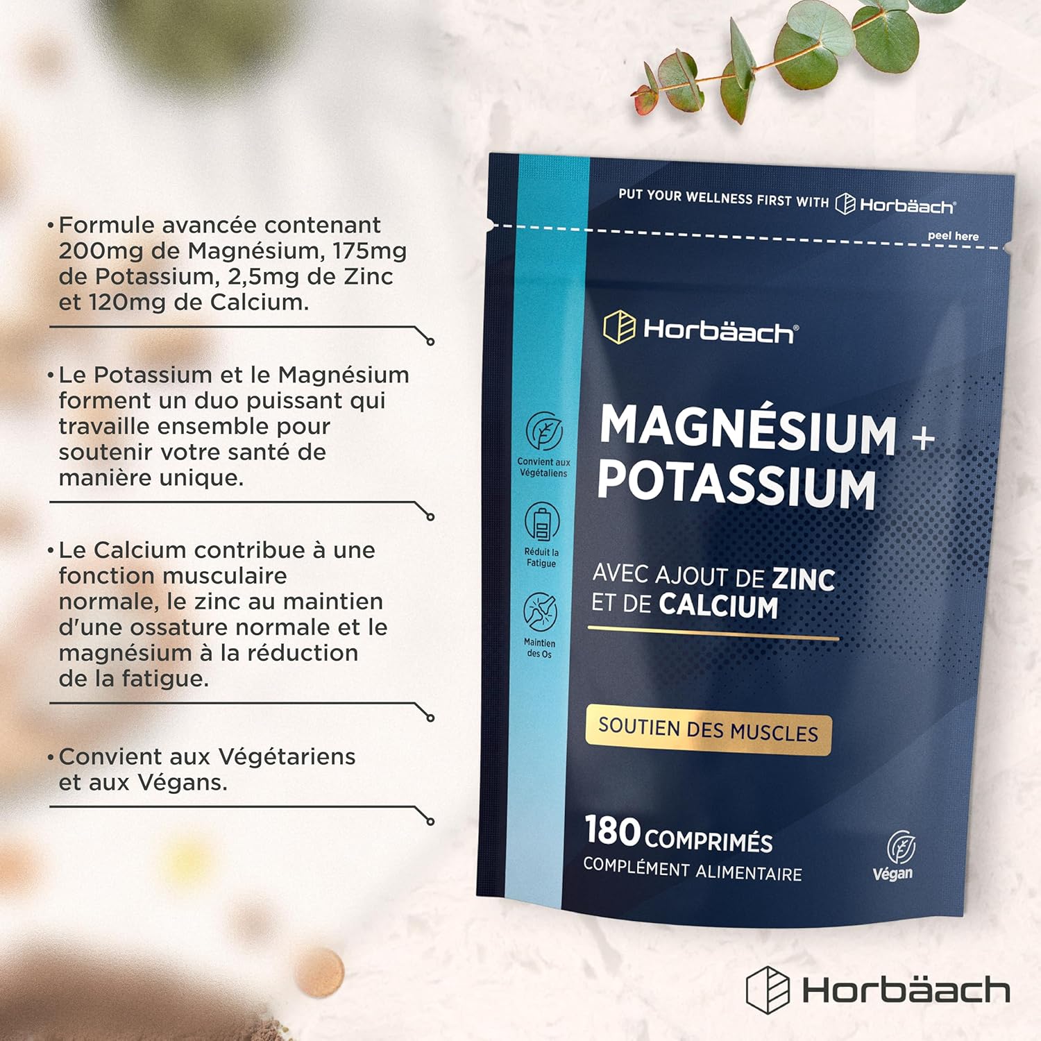 WHY THE MAGNESIUM AND POTASSIUM HORBAACH COMPLEX? : Provides 200 mg of magnesium oxide and 175 mg of potassium per tablet.