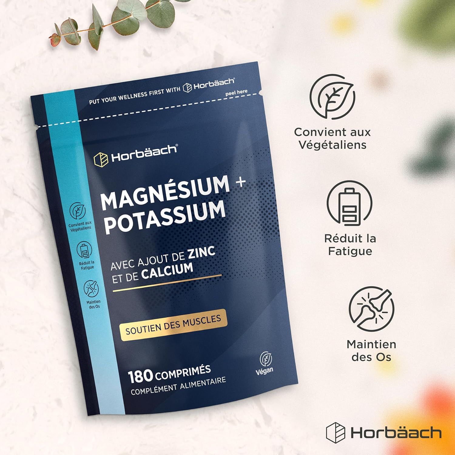 Magnesium Potassium + Zinc Calcium | 180 Vegan Tablets | Magnesium Complex With Iron, Vitamin B12 and Vitamin B6 | High Dosage Dietary Supplement | by Horbaach