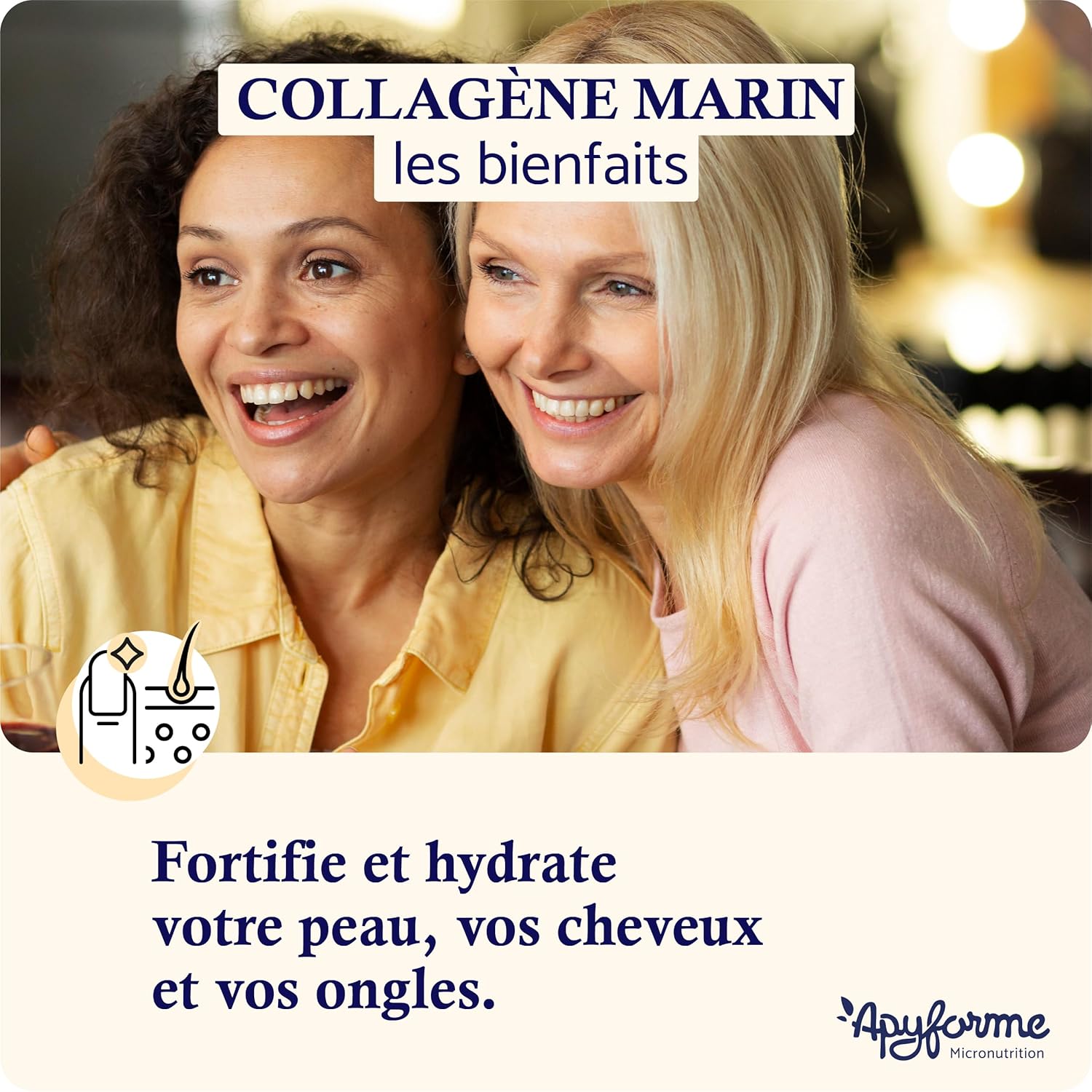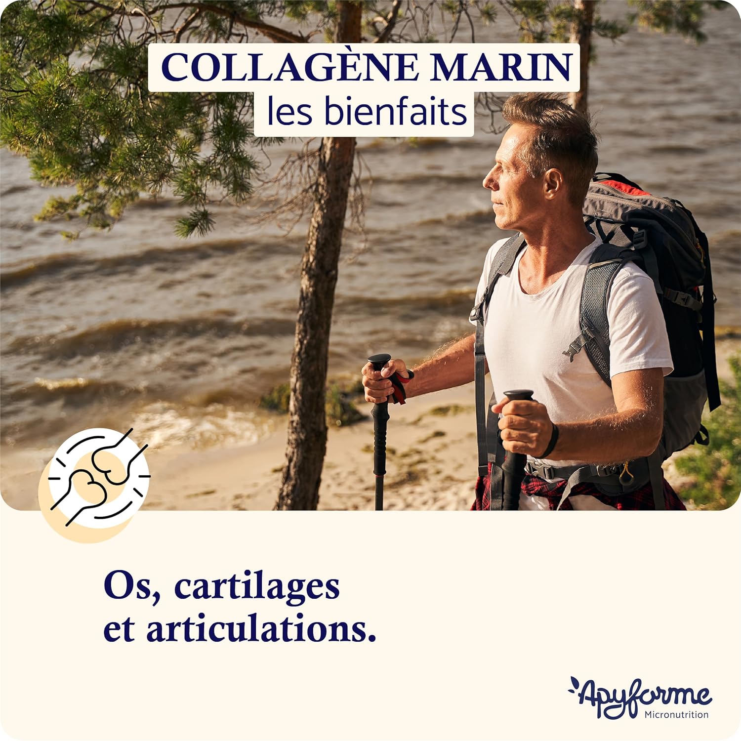 MOBILITY AND JOINT SUPPORT: Apyforme collagen participates in the reconstruction and strengthening of connective tissues, promoting strength and elasticity. By improving hydration and reducing friction, hyaluronic acid helps decrease pressure on cartilage. Our patented vitamin C, protects against oxidative damage and stimulates collagen production. Regain joint well-being in a sustainable way.