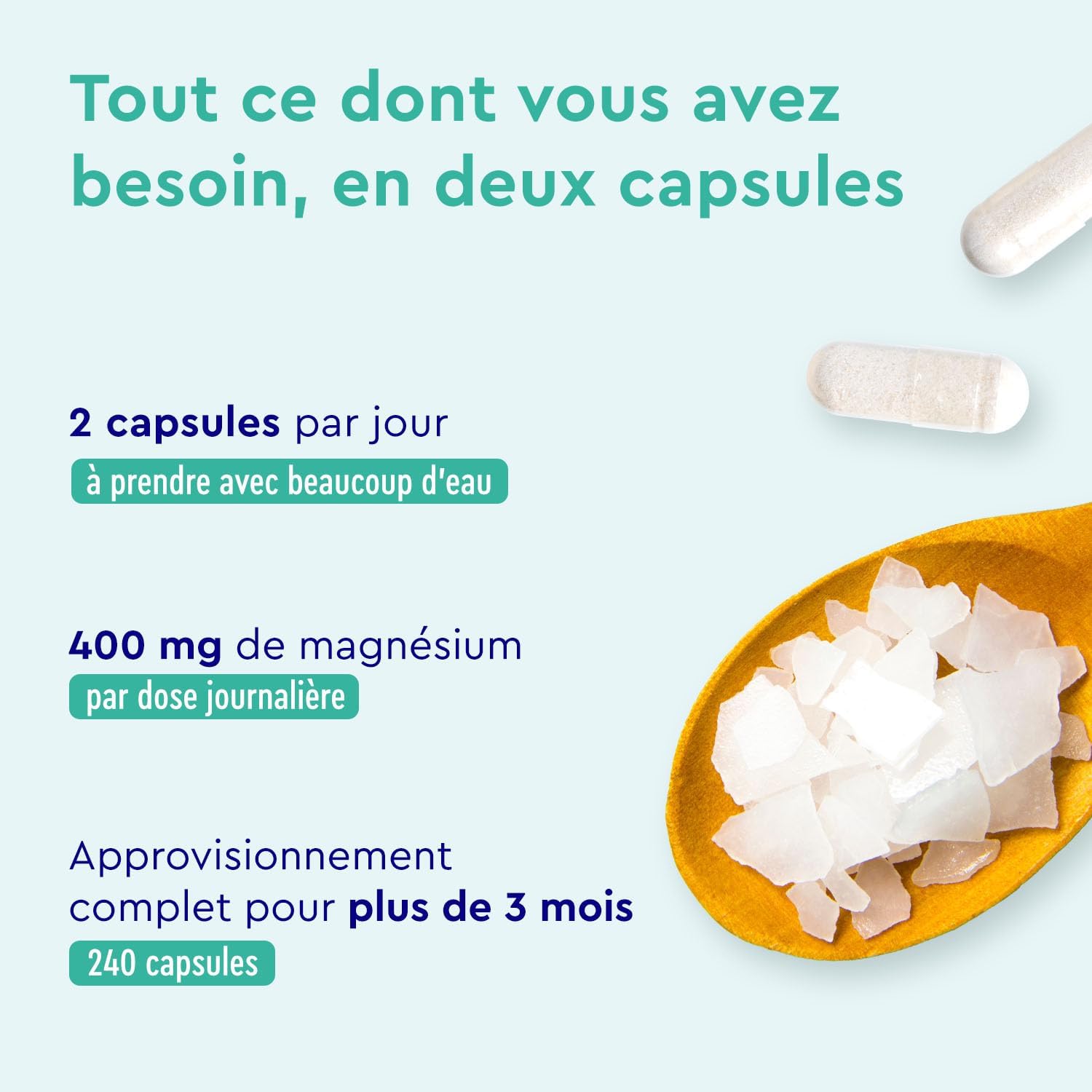 NOW IN A CONVENIENT FORMAT – 200 mg of elemental magnesium per capsule. With a daily dose of one capsule per day, our package of 240 capsules lasts more than 7 months. Our Dead Sea Magnesium Oxide is highly bioavailable and now perfect for travel!