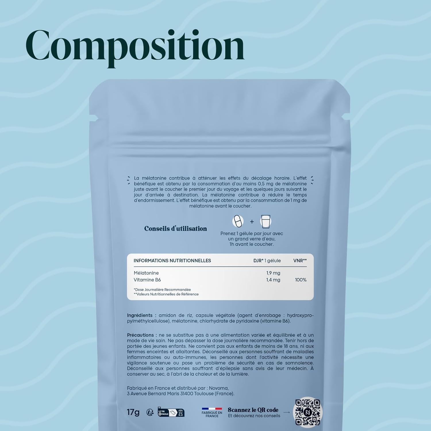Melatonin 1.9mg, Fast Sleep, Natural Sleep & Jet Lag, 2 Month Cure, 60 Vegetable Capsules, Dietary Supplement for Better Sleep, Made in France, Essentials by Novoma