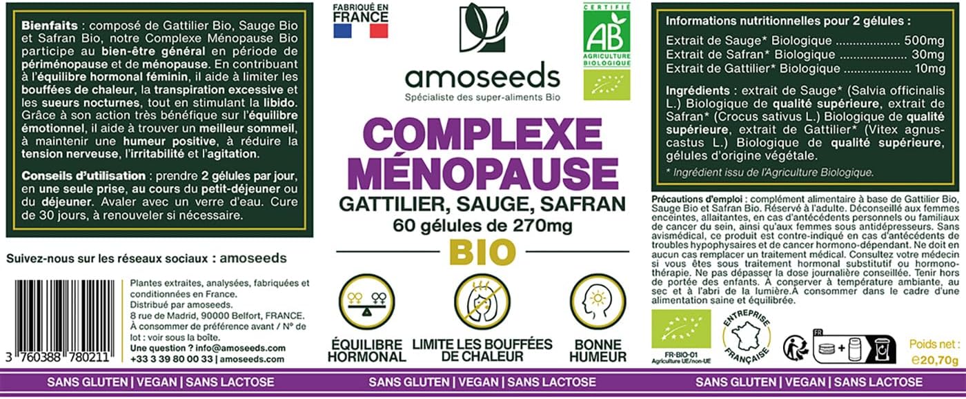 ✅ GOOD MOOD, ANTI-STRESS: To help you regain emotional balance, we have added organic saffron extract to our Organic Menopause Complex. Saffron is scientifically recognized to contribute to the reduction of nervous tension, agitation and irritability. It thus promotes a positive mood and contributes to optimal relaxation, ideal for regaining physical and mental well-being.