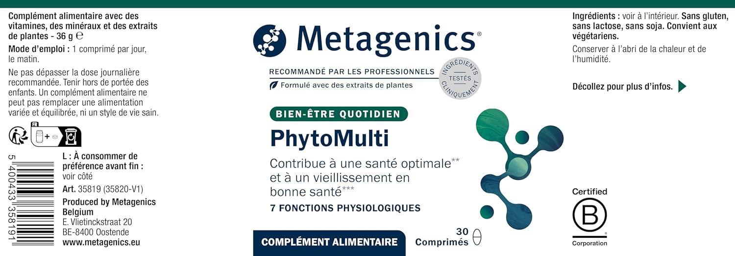 Metagenics PhytoMulti Antioxidant Multivitamins with Plant Extracts and Vitamins A, B12, C, D, Vitality, Immunity, Energy, Vegetarian, 30 Tablets