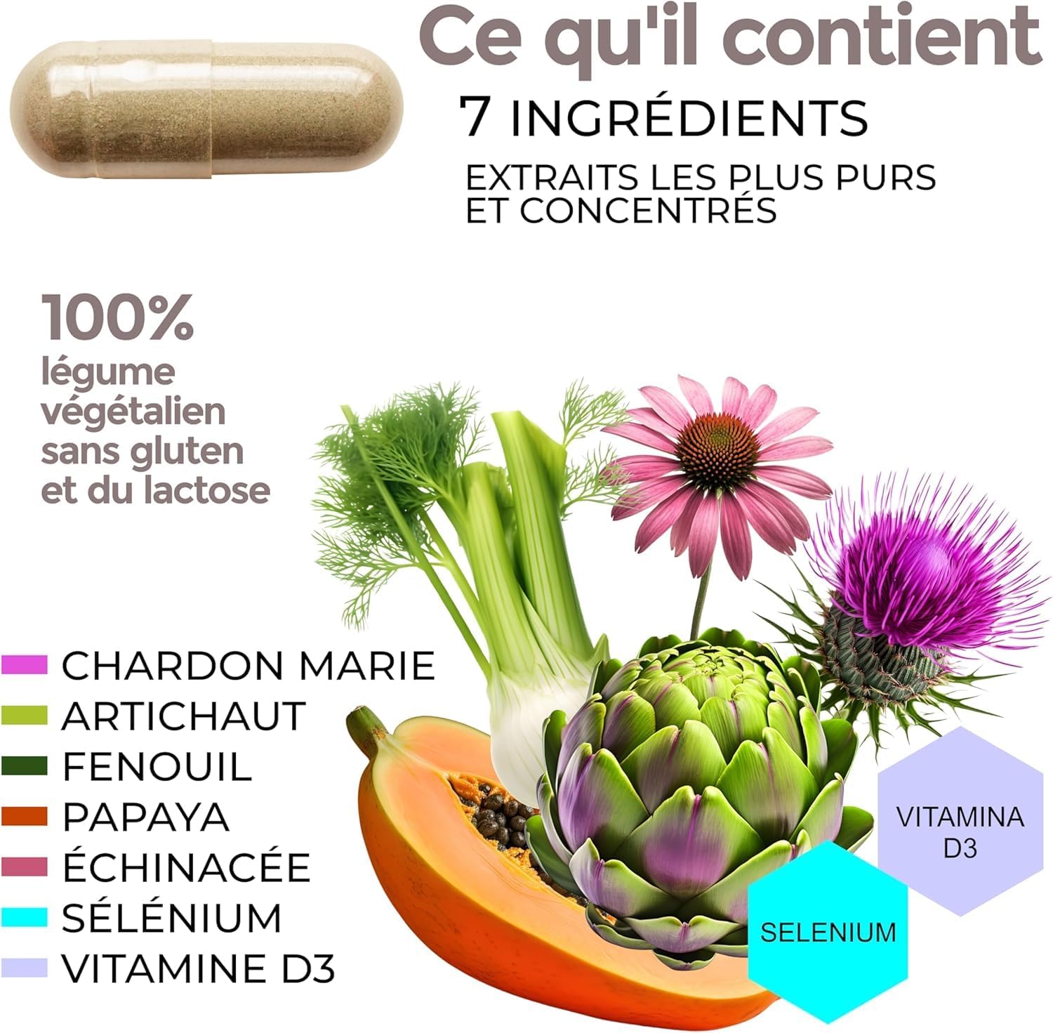 SUPPORT HEPATIC FUNCTION: Milk thistle extract standardized to 80% silymarin is a powerful ally of the liver. This natural ingredient helps support the purifying function of the liver, protecting liver cells from oxidative stress and harmful external agents. Silymarin, in fact, is known for its ability to promote the regeneration of liver cells, promoting effective elimination of toxins and contributing to the maintenance of a healthy and functional liver