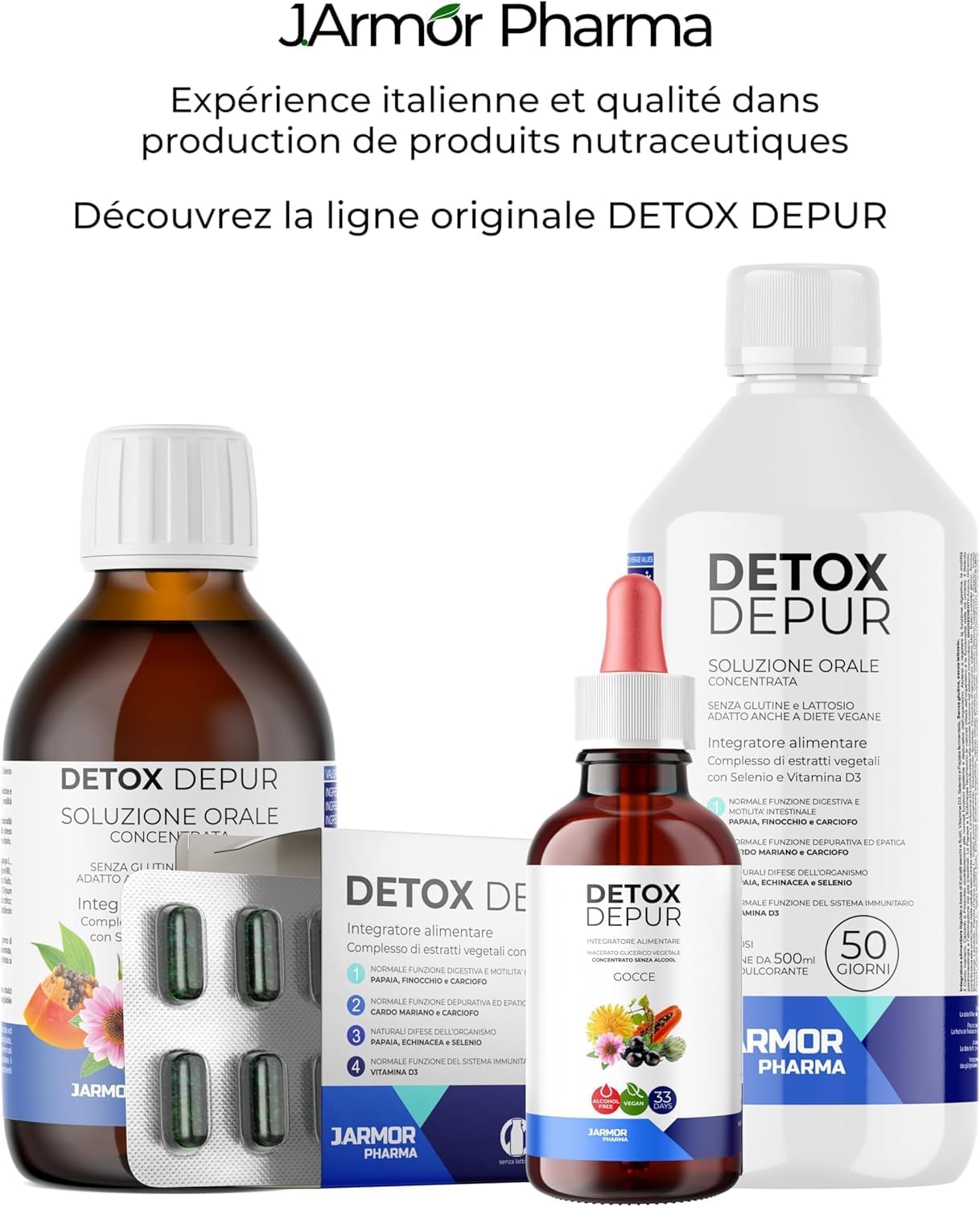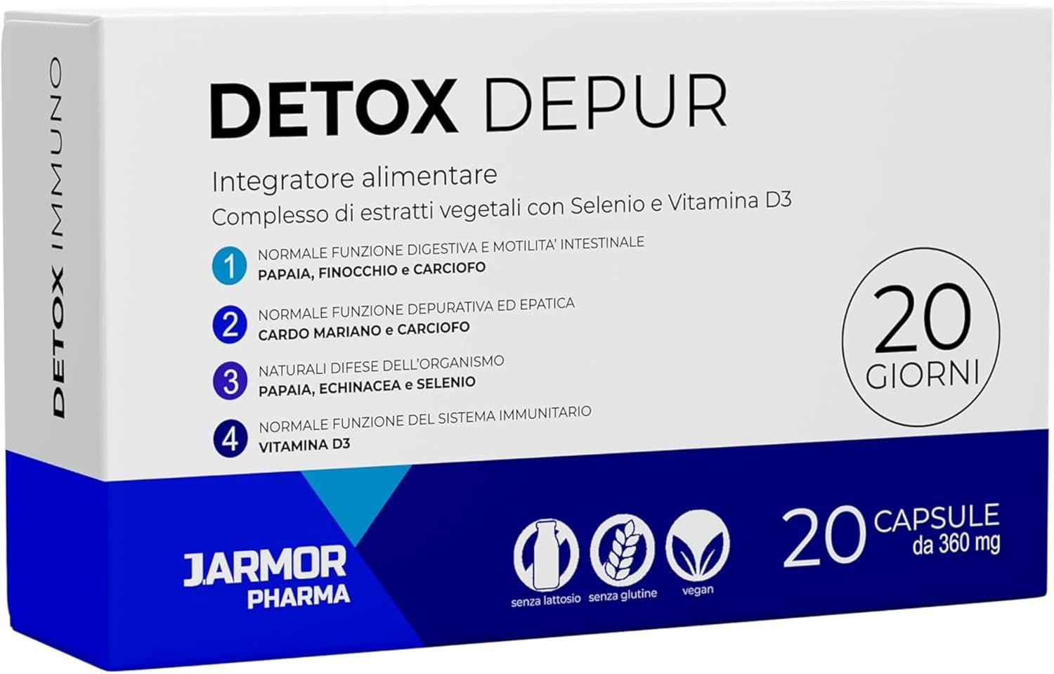 IMMUNE SUPPORT AND GENERAL WELFARE: Thanks to the presence of echinacea and selenium, Detox Depur helps to strengthen the body’s natural defenses, supporting the immune system in maintaining a good general state of health. Echinacea is known for its immunomodulatory properties, while selenium is an essential trace element for protecting cells against oxidative stress, contributing to overall well-being and maintaining optimal health