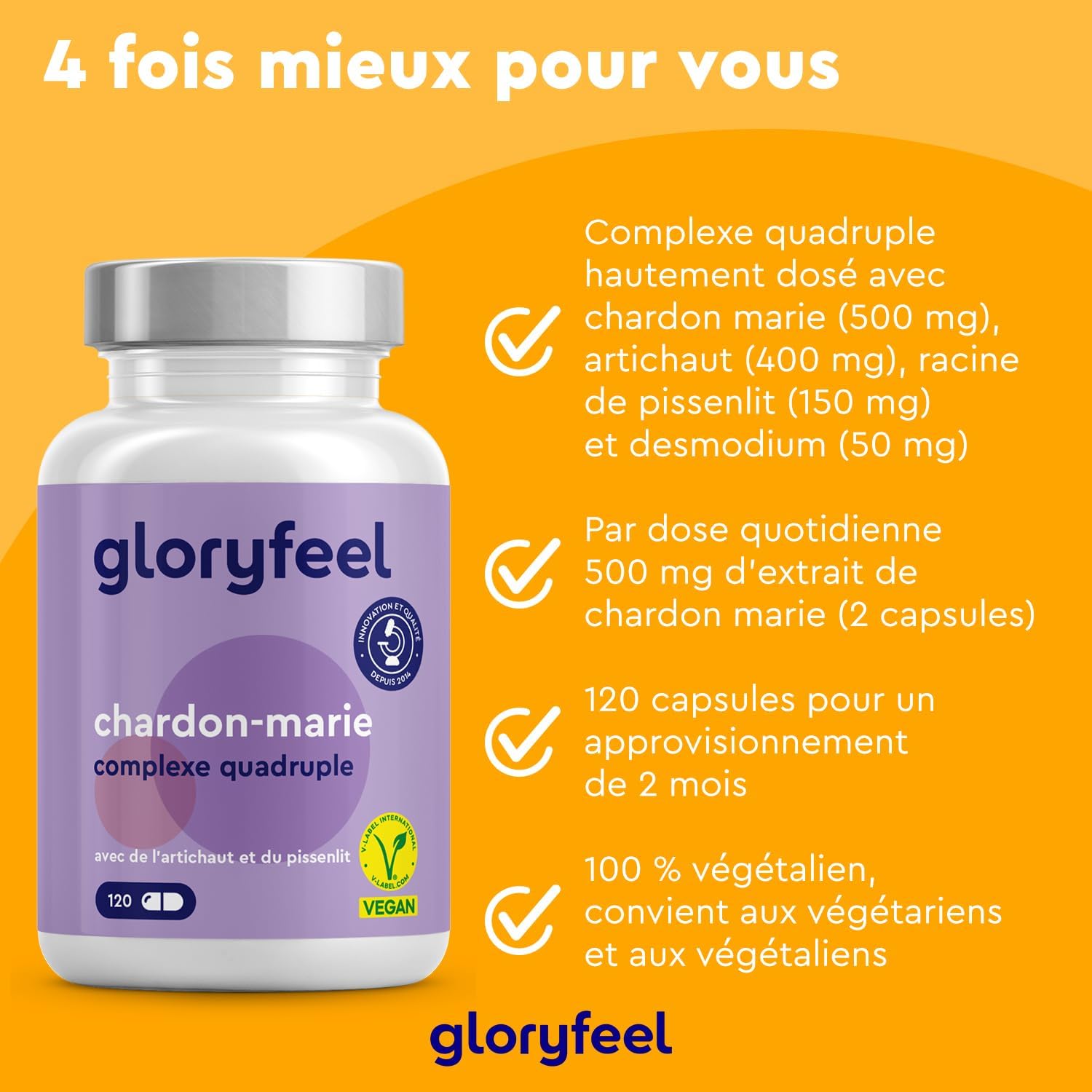 ✅ CHARDON-MARIE FOOD SUPPLEMENT – Formulated with 4 active ingredients from high quality raw materials. The daily dose of 2 capsules contains 500 mg milk thistle extract, 400 mg artichoke extract, 150 mg dandelion extract and 50 mg of desmodium extract.
