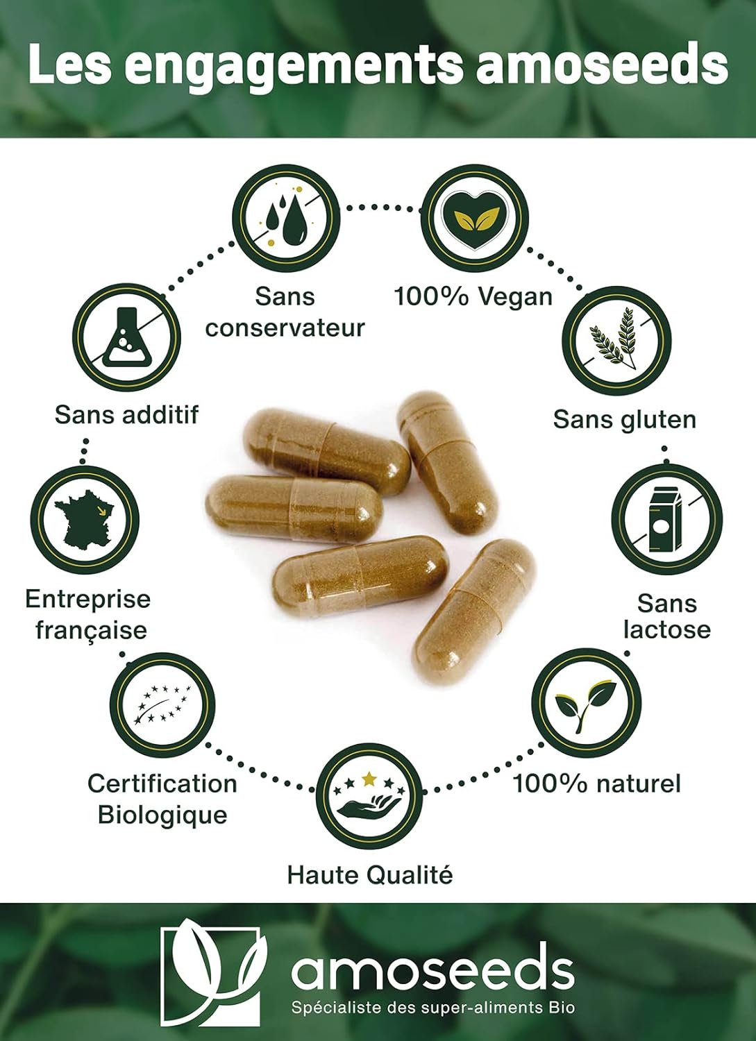 UTILISATION ET QUALITÉ : Moringa Oleifera en gélules Bio 100% Naturel et pur Glycémie Os Énergie Amoseeds Super-Aliments BioMoringa Oleifera en gélules Bio 100% Naturel et pur Glycémie Os Énergie Amoseeds Super-Aliments Bio CONSEILS D’UTILISATION
