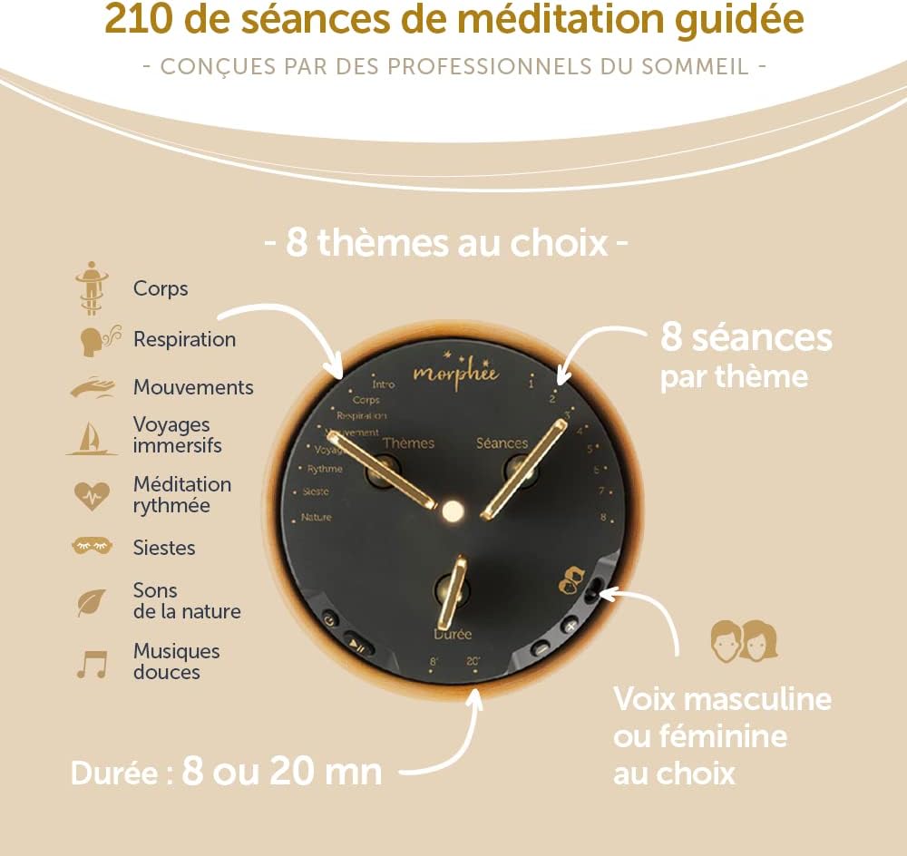 SIMPLE AND EFFECTIVE: The Morphée meditation box allows you to fall asleep quickly and easily and generate a deep sleep thanks to its 210 audio sessions of mediation and sophrology. Sessions are listened to in the evening at bedtime or during night awakenings. This device is ideal for returning to a peaceful sleep.