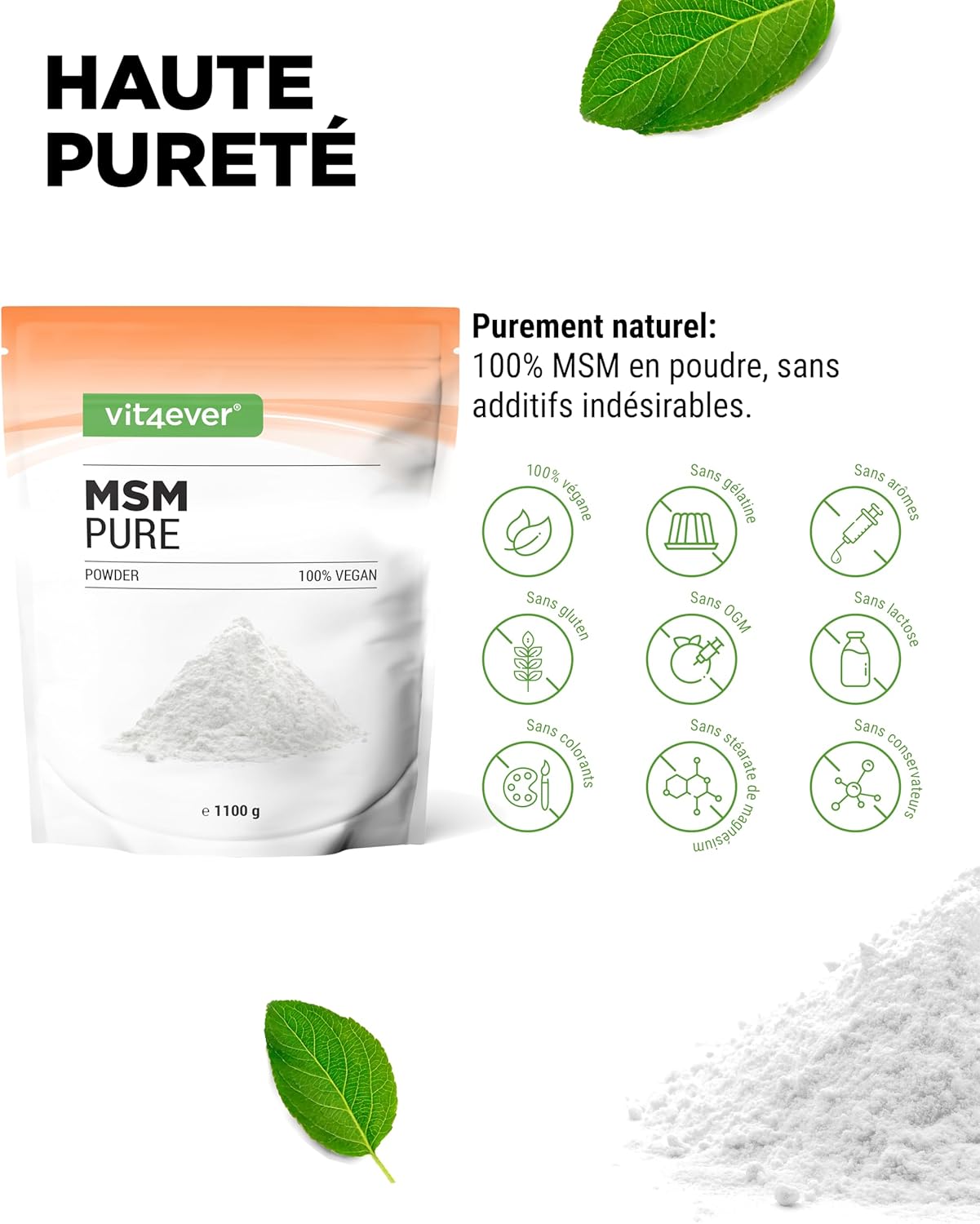 PREMIUM QUALITY: Our MSM powder has a high purity of 99.9% and comes in the form of crystals. Since the powder has an ideal mesh factor of 40-80, sulfur powder is produced through a complex distillation process, which preserves its fine-grained structure. * Prize/performance winner in the category “MSM powder” at Vergleich.org 2019.