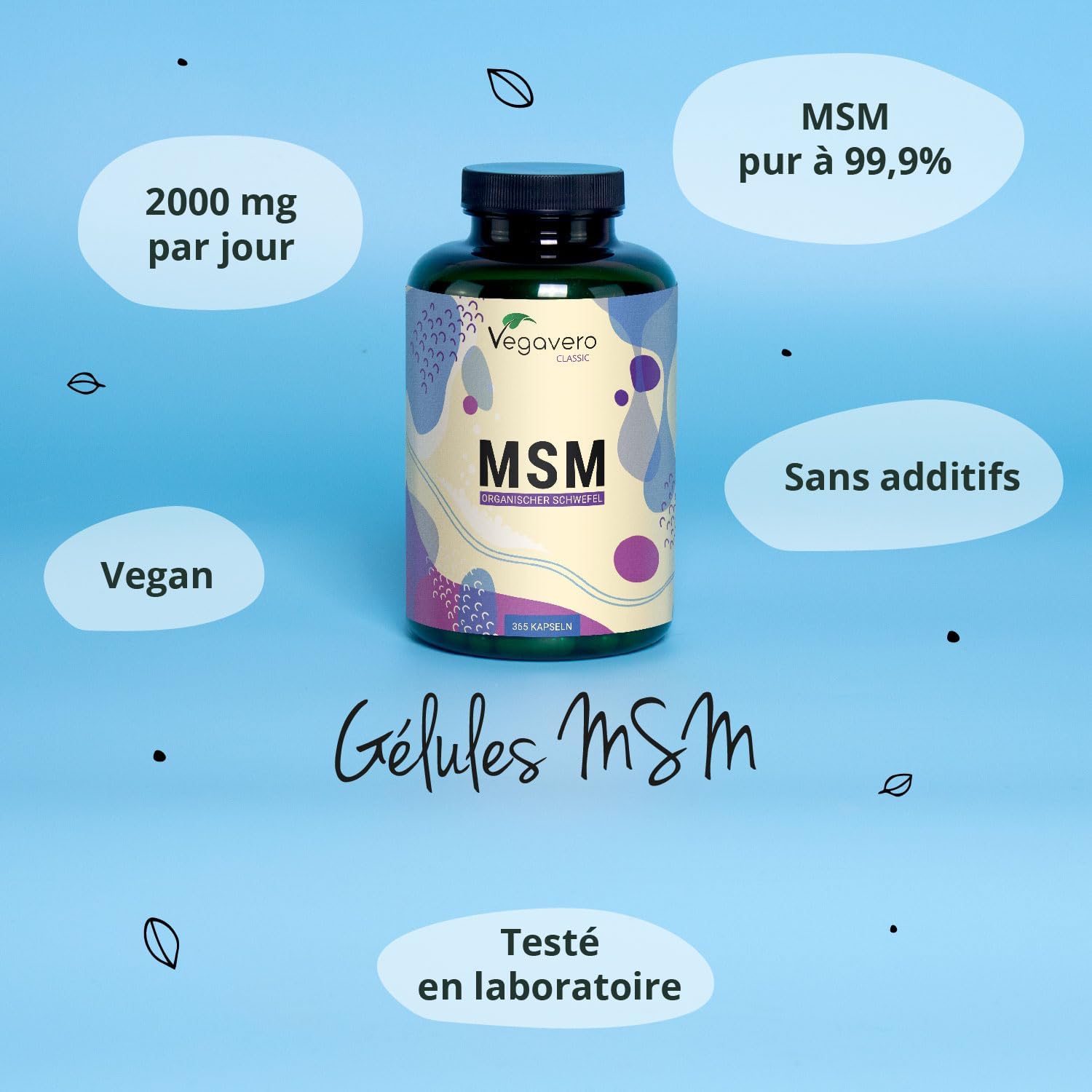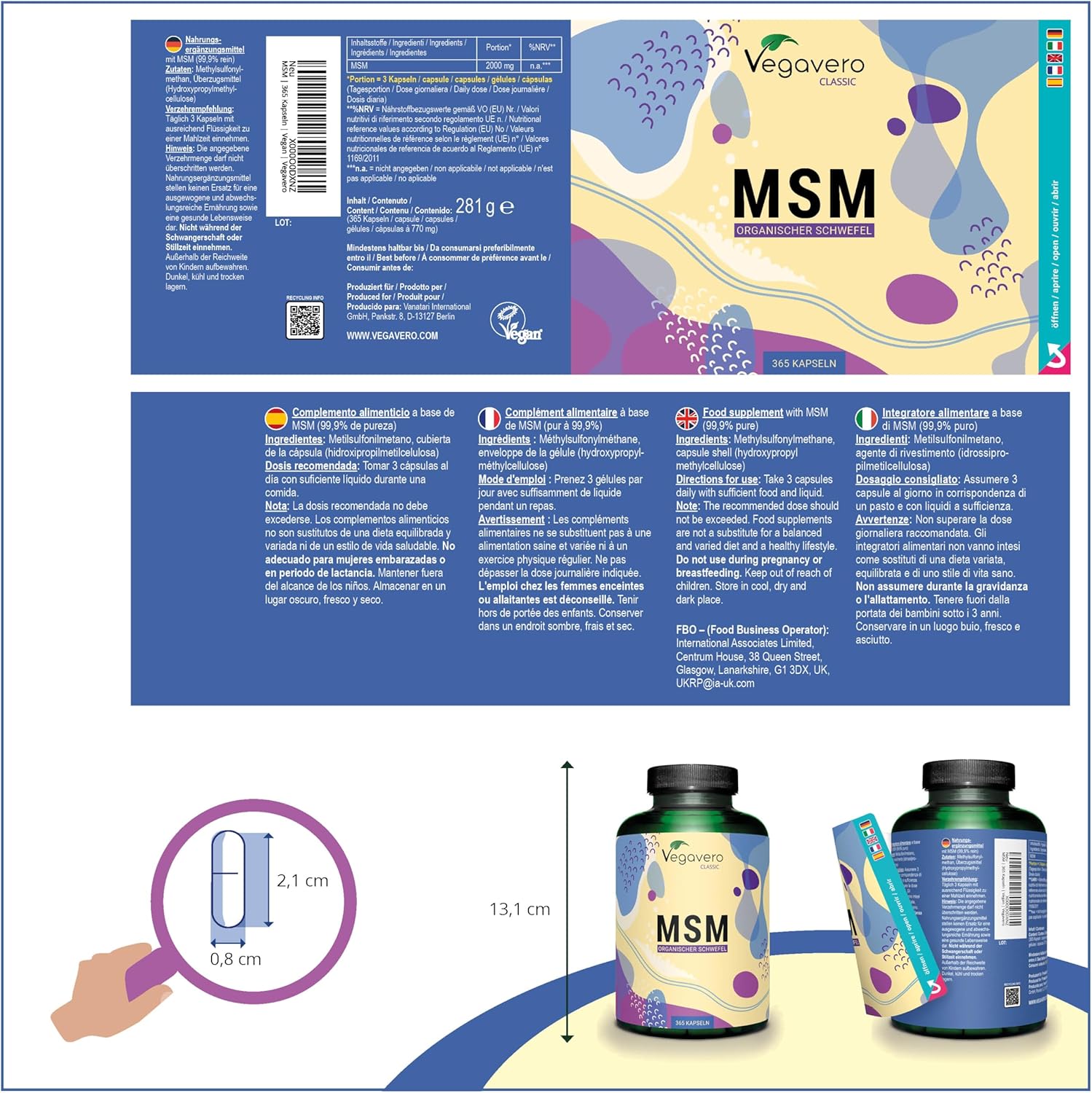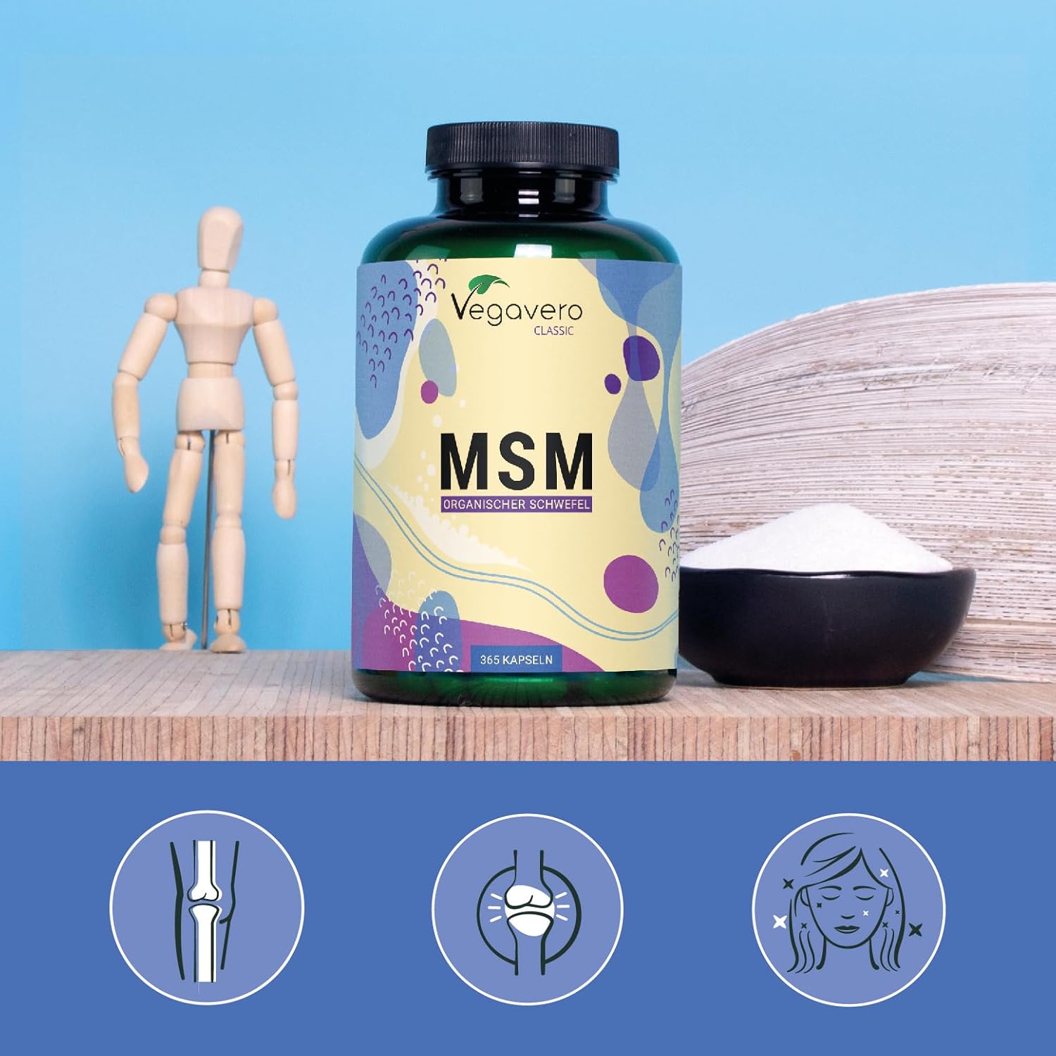 MSM Vegavero® | 365 Capsules | 2000 mg | 99.9% Pure Organic Sulphur | Joint Pain + Collagen Formation | No Additives & Vegan | Lab Tested