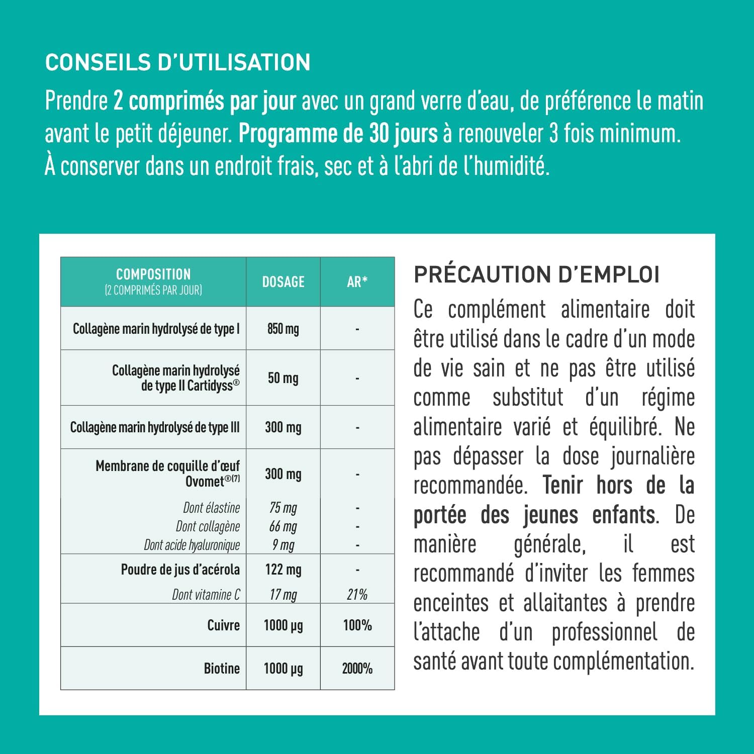 SIMPLE USE: Take 2 tablets daily of MULTI COLLAGENE with a large glass of water, preferably in the morning before breakfast. 30-day collagen cure, to be renewed at least 3 times.