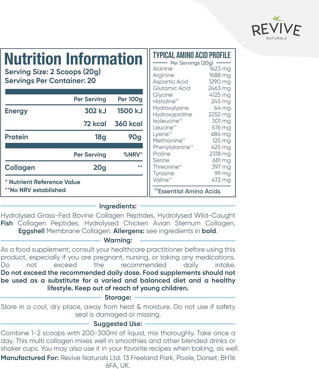 Multicollagen Protein Powder (400g) | 5 Types of Food-Origin Collagen Peptides – Hydrolyzed Grass-Fed Cattle, Wild Sea Fish & Free-Standing Chicken, Unflavored
