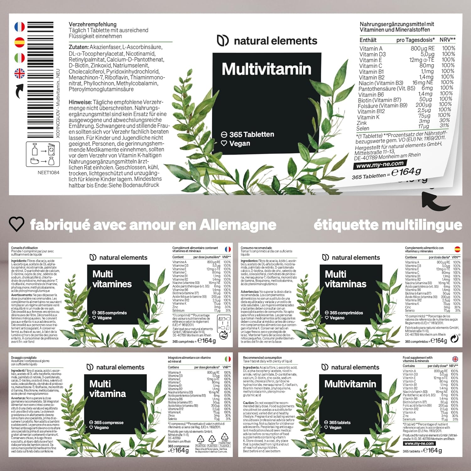 Multivitamins – 365 vegan tablets – annual supply – valuable vitamins from A to Z, with vitamins K1 and K2 – without unnecessary additives – produced and tested in the laboratory in Germany