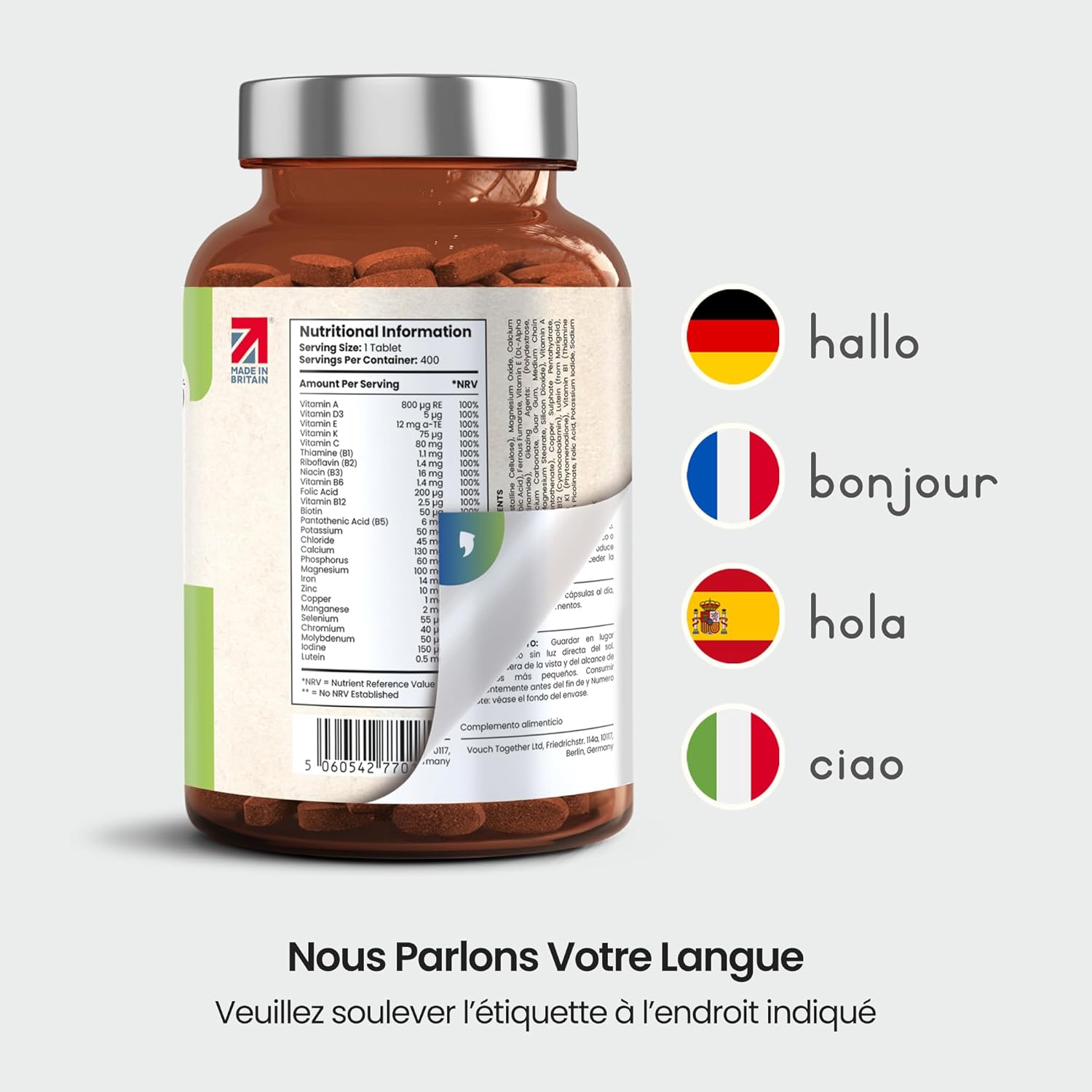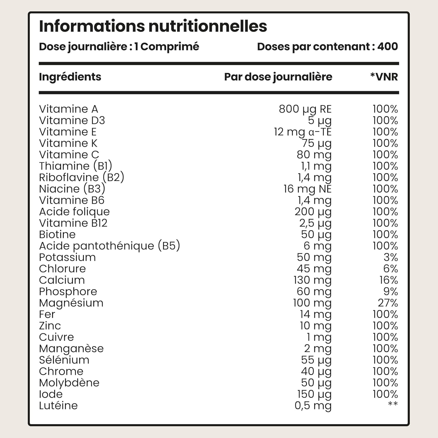POWERFUL FATIGUE FOOD SUPPLEMENT: Enjoy a vitamin cure of 400 tablets, a supply of 13 months. Each tablet offers a precise dosage of essential vitamins and minerals, such as vitamin b2 and vitamin C, to fight fatigue and support adult immune defense. A single daily tablet of our energy supplement helps you maintain your energy, while boosting muscle recovery after exercise.